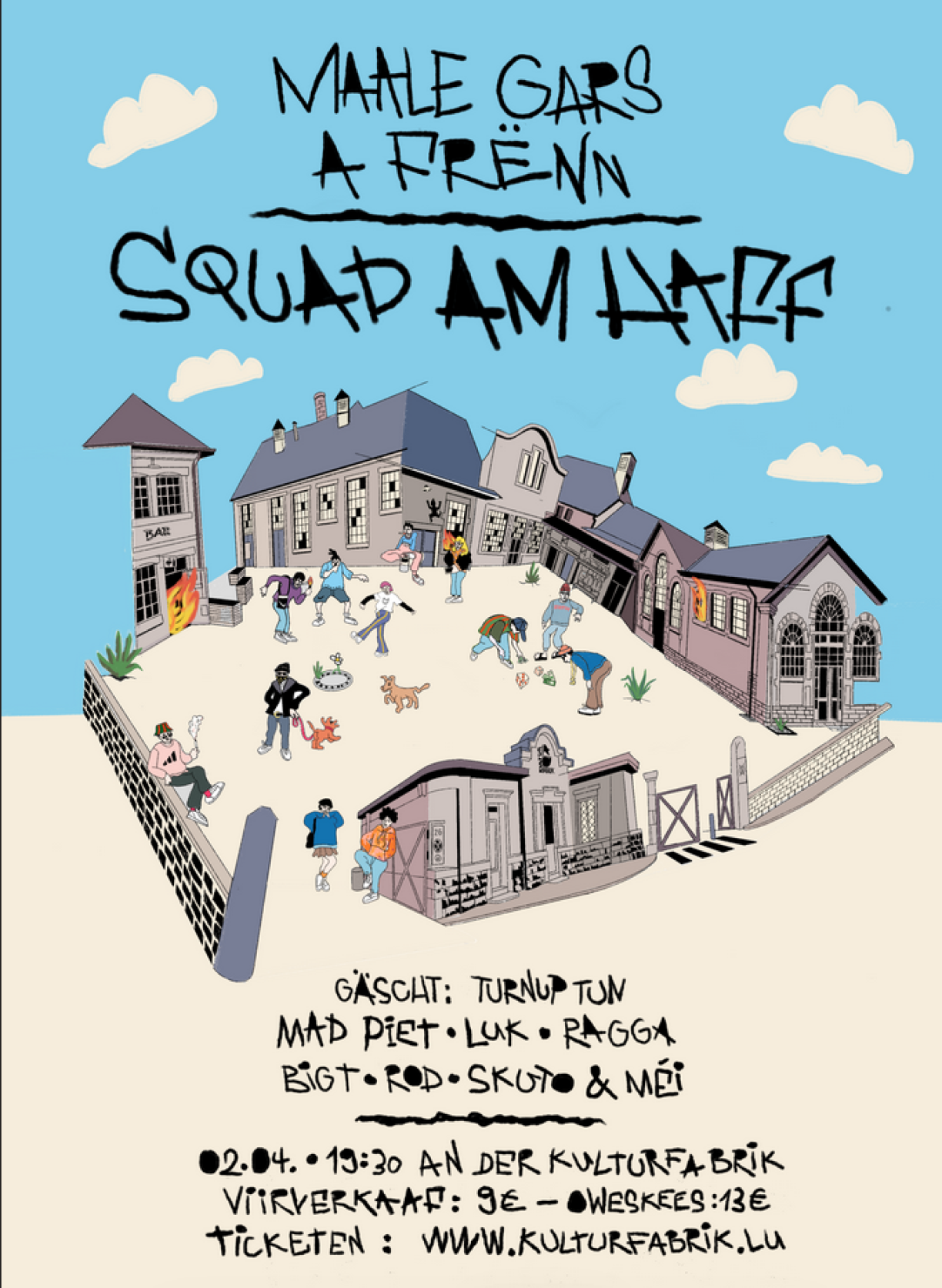 De Concert vum “Maale Gars a Frënn” ass den 2. Abrëll an der KUFA. Méi Informatiounen an Tickete kritt dir op hirem Site.