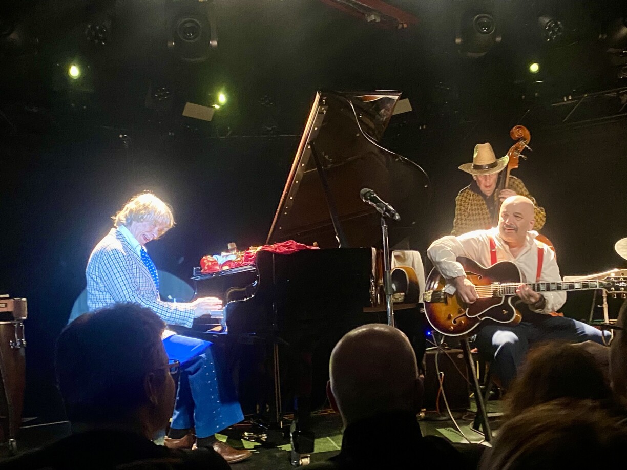 Um Punkt 8 Auer sinn d’Luuchten dunn ausgaangen an den Helge Schneider koum zesumme mam Batteur Willy Ketzer, dem Gittarist Sandro Giampietro an dem Reinhard Glöder um Kontrabass a Begleedung vun euphoreschem Applaus an heller Begeeschterung säitens dem struppevollen Atelier op d’Bün. D’Band huet och direkt lassgeluecht, dat op déi gewinnte speziell Manéier, fir déi den Helge Schneider zënter Joerzéngte bekannt ass a gefeiert gëtt an trotzdeem, oder warscheinlech grad dofir och haut nach ëmmer al a jonk Fans virun d’Bün zitt.