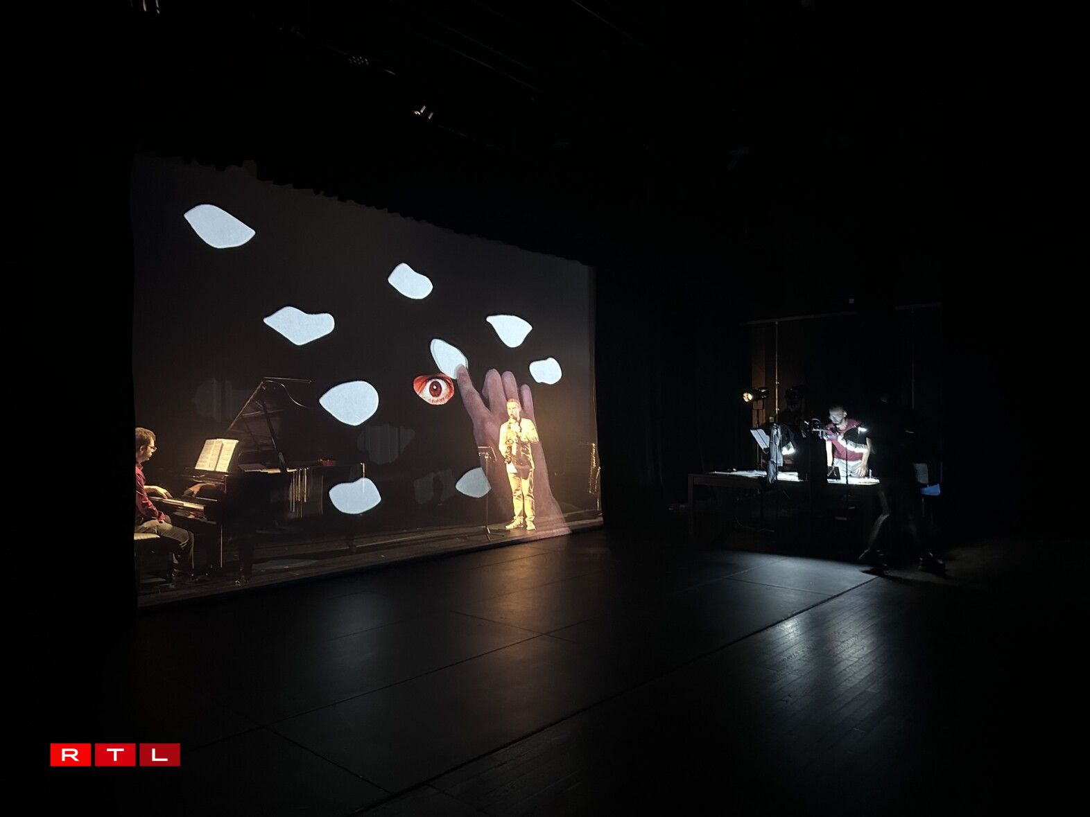 Elo hunn den Duo Mader/Panpandreopoulos - bestoend aus dem Saxofonist a Wahl-Lëtzebuerger Andreas Mader, an dem Pianist Christos Papandreopoulos - an d’Kompanie “Fly Theatre” - un därer Spëtzt de visuelle Kënschtler Robin Beer steet - sech zesummegedoen, fir wärend enger 5 Deeg laanger Residenz “Der Sandmann” zu engem visuelle Concert ze verschaffen.