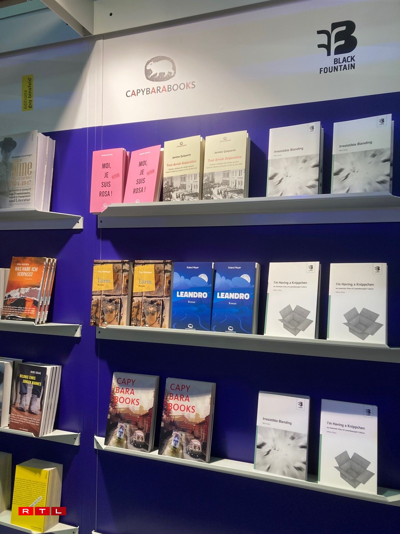 Mat dobäi och de Stand vu Kultur/lx, op dem Bicher vu Lëtzebuerger Editeuren ze fanne sinn. E Lëtzebuerger Stand dee sech am Verglach zum leschte Joer e bësse verännert huet, wéi de Brian Bailey vu Kultur/lx erkläert: