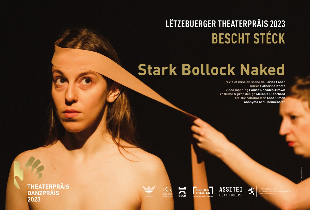 Stark Bollock Naked mat Text a Mise en scène vum Larissa Faber (anonyma ASBL, Neimënster)