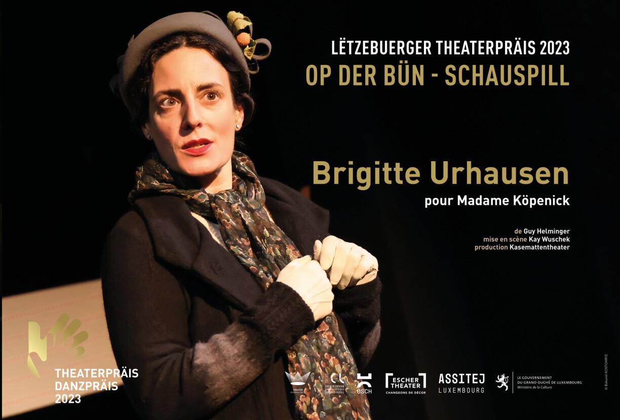 Brigitte Urhausen fir “Madame Köpenick” (Guy Helminger, Mise en scène: Kay Wuschek, Produktioun: Kasemattentheater)