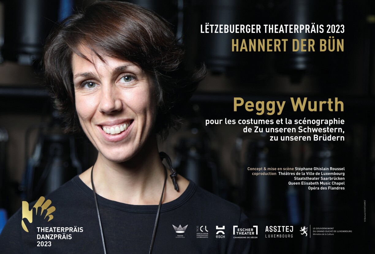 Peggy Wurth fir d’Kostümer fir d’Stéck “Zu unseren Schwestern, zu unseren Brüdern” (Théâtres de la Ville de Luxembourg, Staatstheater Saarbrücken, Queen Elisabeth Music Chapel, Opéra des Flandres).