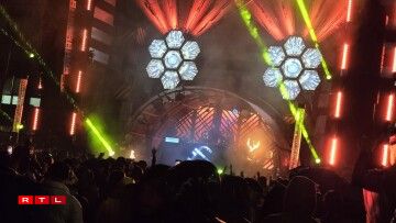 Et ass schonn eng ganz besonnesch Plaz fir e Festival. Elektro-Musek nieft den Héichiewen um Belval. Wéinst dem Ree sinn d’Leit um Samschdeg géint der Owend lues a lues eragedrëpst.