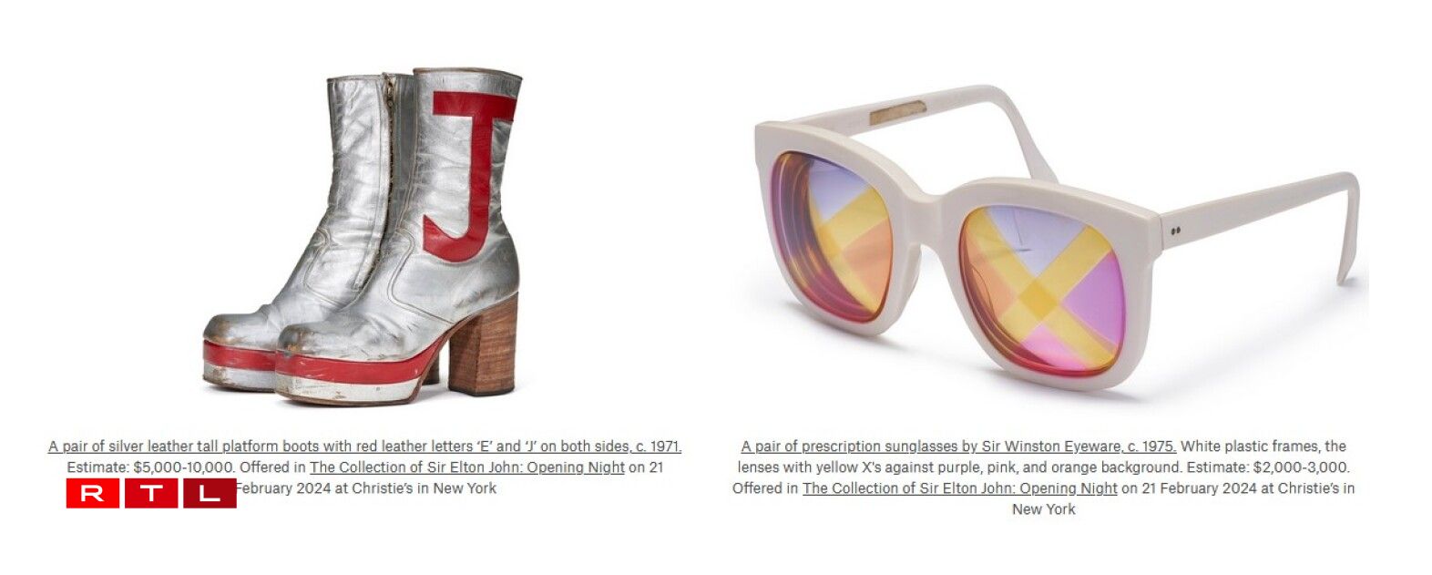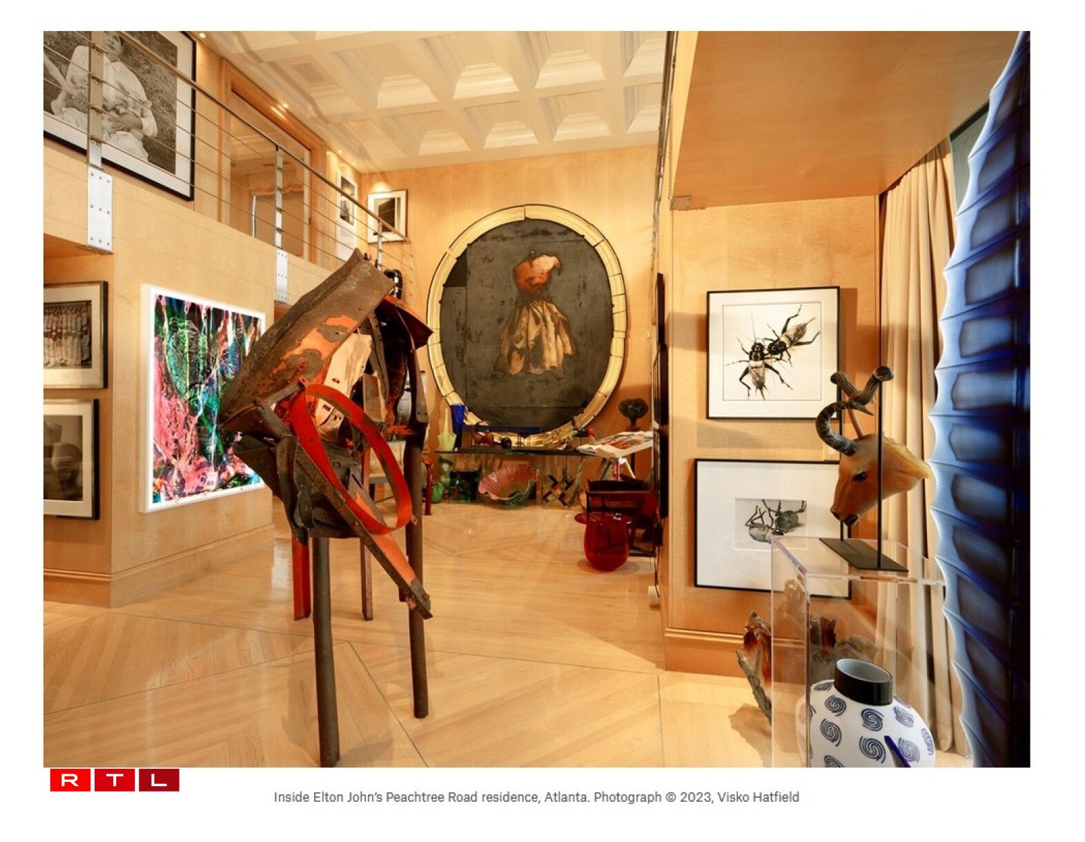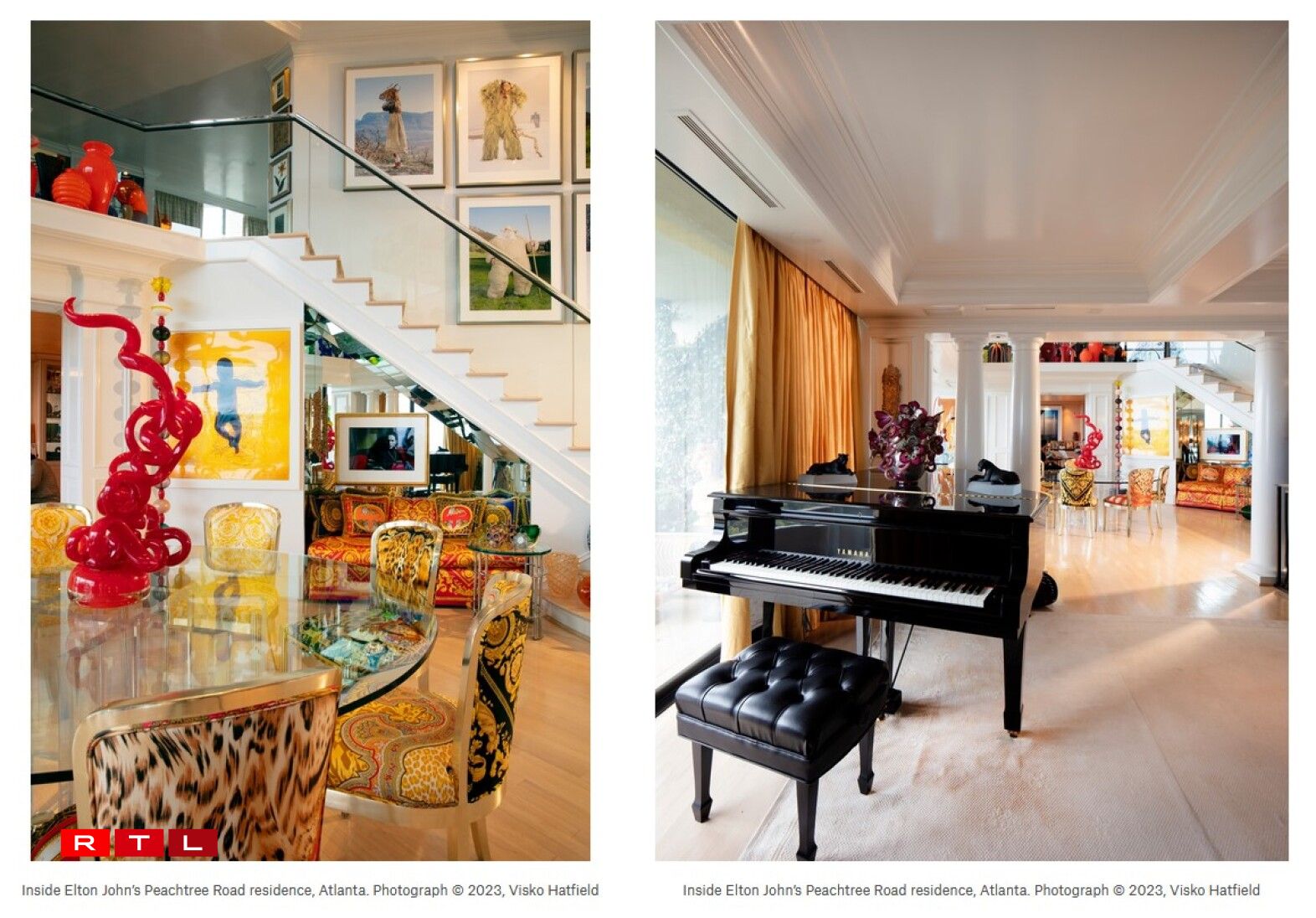 Wien de Sänger kennt, weess, datt de Sir Elton John en éischter ausgefalene Goût huet. Ënnert den 900 Géigestänn aus senger Residenz sinn ënnert anerem extravagant Sonnebrëller, déi zum Markenzeeche vum 76 Joer ale Museker gehéieren, grad ewéi Konschtwierker, wéi zum Beispill vum Kënschtler Banksy oder dem Julian Schnabel, awer och de Yamaha-Piano, op deem den Elton John seng Shows um Broadway gespillt huet.