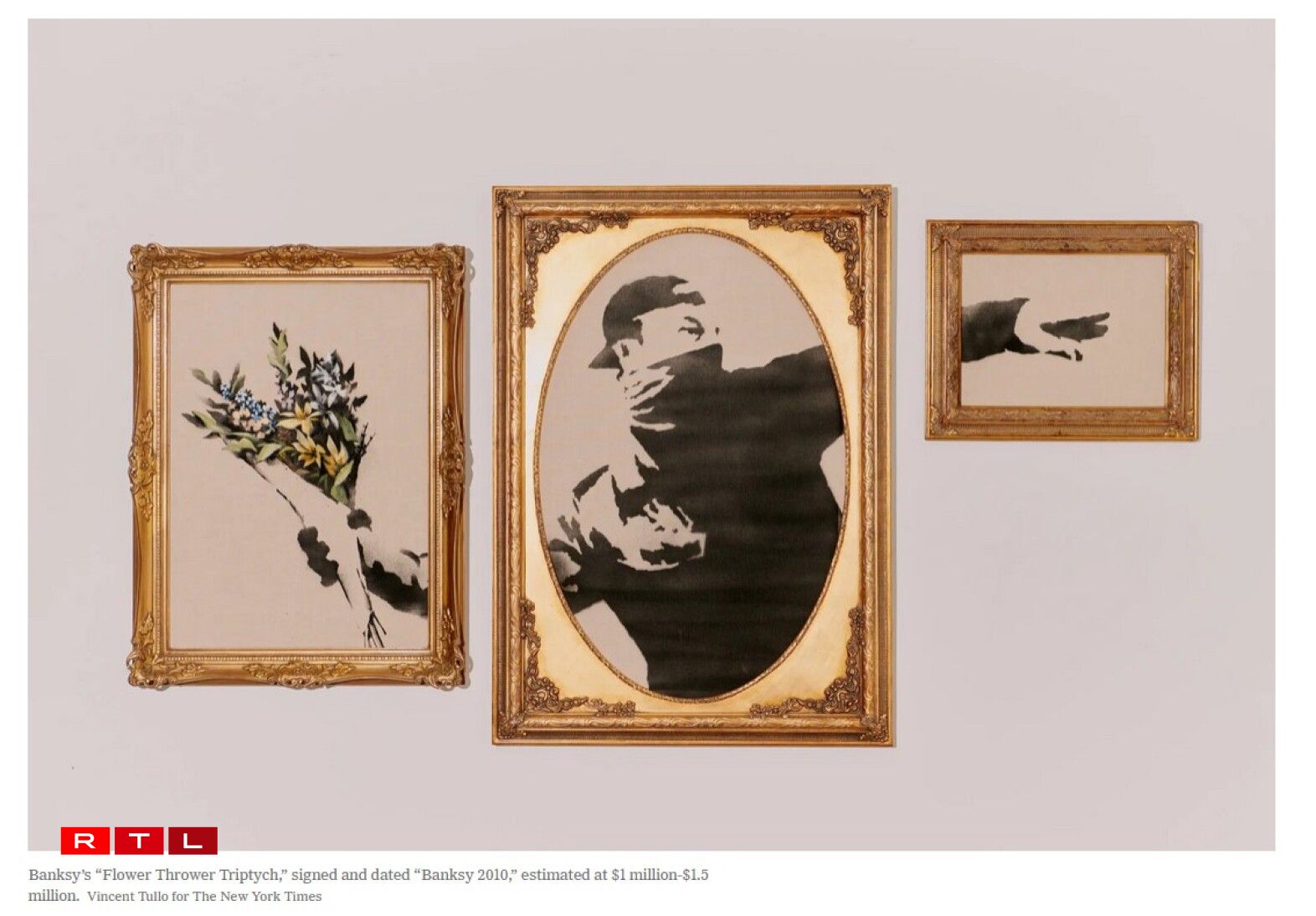 Den Tablo vum Banksy aus dem Joer 2017 ass den deiersten Objet, deen ënnert den Hummer kënnt. D’Bild, dat e maskéierte Mann weist, deen e Bouquet Blumme geheit, soll fir knapp 1,5 Milliounen Dollar verkaf ginn.