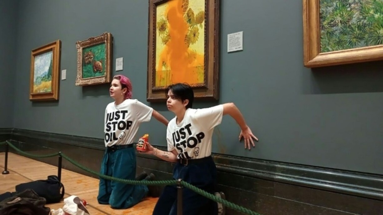 Bei der Aktioun vun der Ëmtweltgrupp “Just Stop Oil” hate béid Aktivistinnen e Freideg zu London d’Meeschterwierk vum hollännesche Moler mat Tomatenzopp iwwergoss. Wéi d’Nationalgalerie matgedeelt huet, huet hir Aktioun just e “klenge Schued” un der Rumm hannerlooss. D’Konschtwierk selwer wier onbeschiedegt bliwwen.