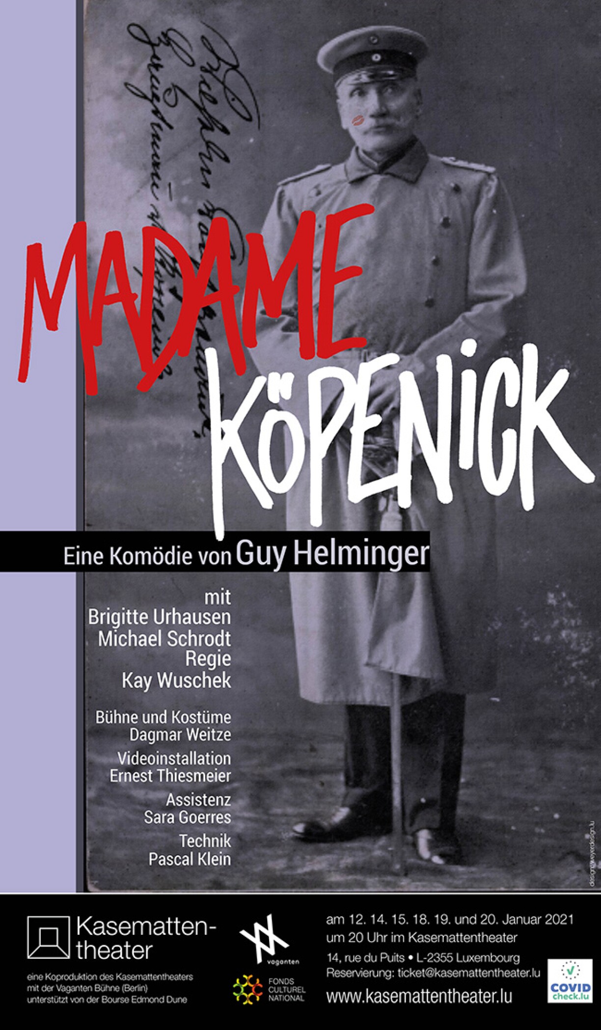 D’Reprise vun “Madame Köpenick” gëtt vum 5. bis den 7. Oktober am Kasemattentheater gespillt, mam Brigitte Urhausen an dem Michael Schrodt op der Bün.