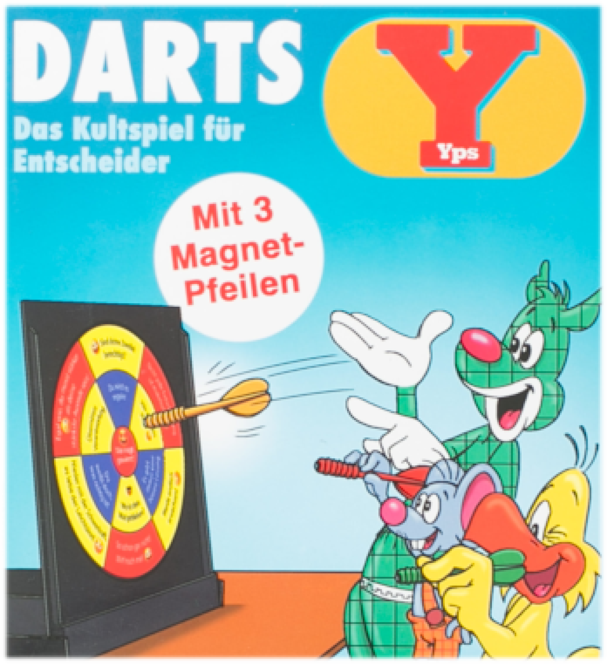 An och am Gebuertsdagsheft ass ee Gimmick dobäi: Eng Dartsscheif, déi engem hëllefe soll, wann een eng Decisioun muss huelen. Ee Gimmick am typeschen Yps-Stil, mat enger gesonder Portioun Humor.