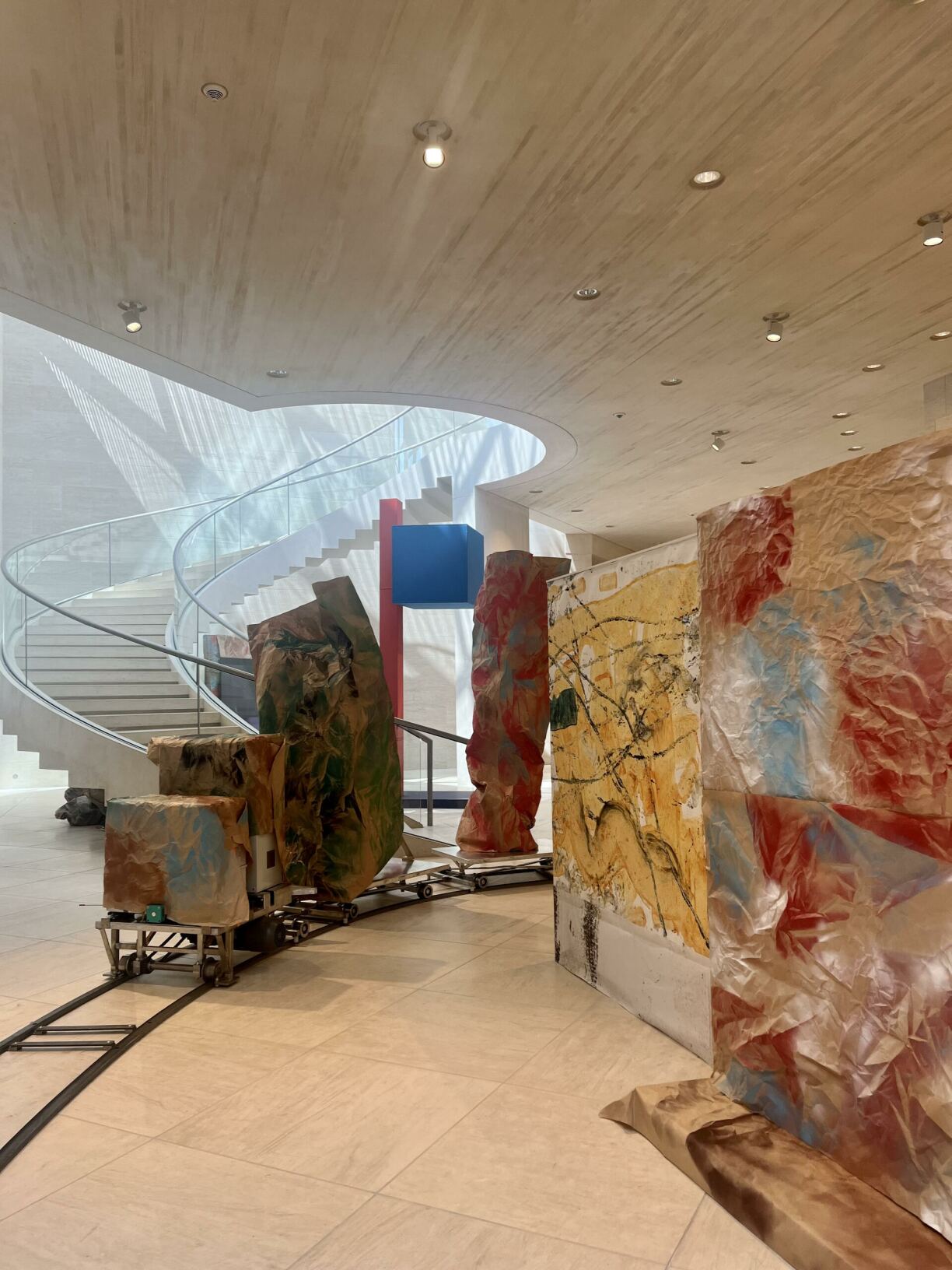 Fir seng Liewenswierker anzeleeden, huet d’Kënschtlerin Monster Chetwynd eng Installatioun inspiréiert um Schawinsky senger Opfaassung vu Konscht kreéiert ënnert dem Titel “Xanti Shenanigans”. Dës ass am Foyer vum Mudam a verbënnt déi zwee Ausstellungsraim. Si huet zum Schawinsky senger Éierung seng “Track Painting” Wierker a senger Opfaassung vum mobillem Theater op hir eege Manéier an an enger spillerescher Inzenéierung rekonstruéiert.