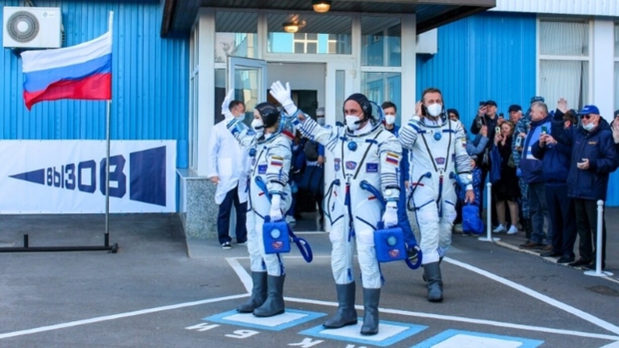 De Start vun der Weltraumgare Baikonur am Kasachstan war um 10.55 Auer MESZ geplangt. Den 38 Joer ale Regisseur Klim Tschipenko an déi 37 Joer al Schauspillerin Julia Peressild gi vun engem russesche Kosmonaut begleet.