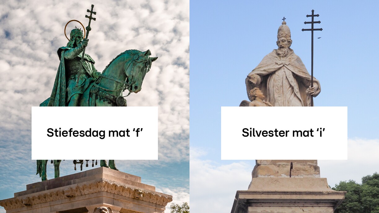 Eis däitsch Noperen, jo déi maache sech et einfach: Fir si ass den Dag vun haut einfach den “Zweiter Weihnachtsfeiertag”. Op d’mannst orthografesch stellt déi Bezeechnung keng gréisser Gefor duer. Am Géigesaz zu der lëtzebuergescher Bezeechnung fir den haitege Feierdag: Stiefesdag. Nieft der Aussprooch mat f héiert ee ganz dacks Stiewesdag oder souguer Stierwesdag, ma geschriwwe gëtt en awer ëmmer mat f an dat aus guddem Grond, wéi den Alexandre Ecker, Direkter vum Zenter fir d’Lëtzebuerger Sprooch (ZLS), erkläert: “De Stiefesdag huet näischt mam Verb stierwen ze dinn. Et ass den Dag vum Hellege Stephanus. Hien ass déi éischt Persoun, vun där iwwerliwwert ass, datt se wéinst hirem Bekenntnis zum Glawen u Christus ëmbruecht gouf. E gëllt dowéinst als éischte chrëschtleche Märtyrer.”