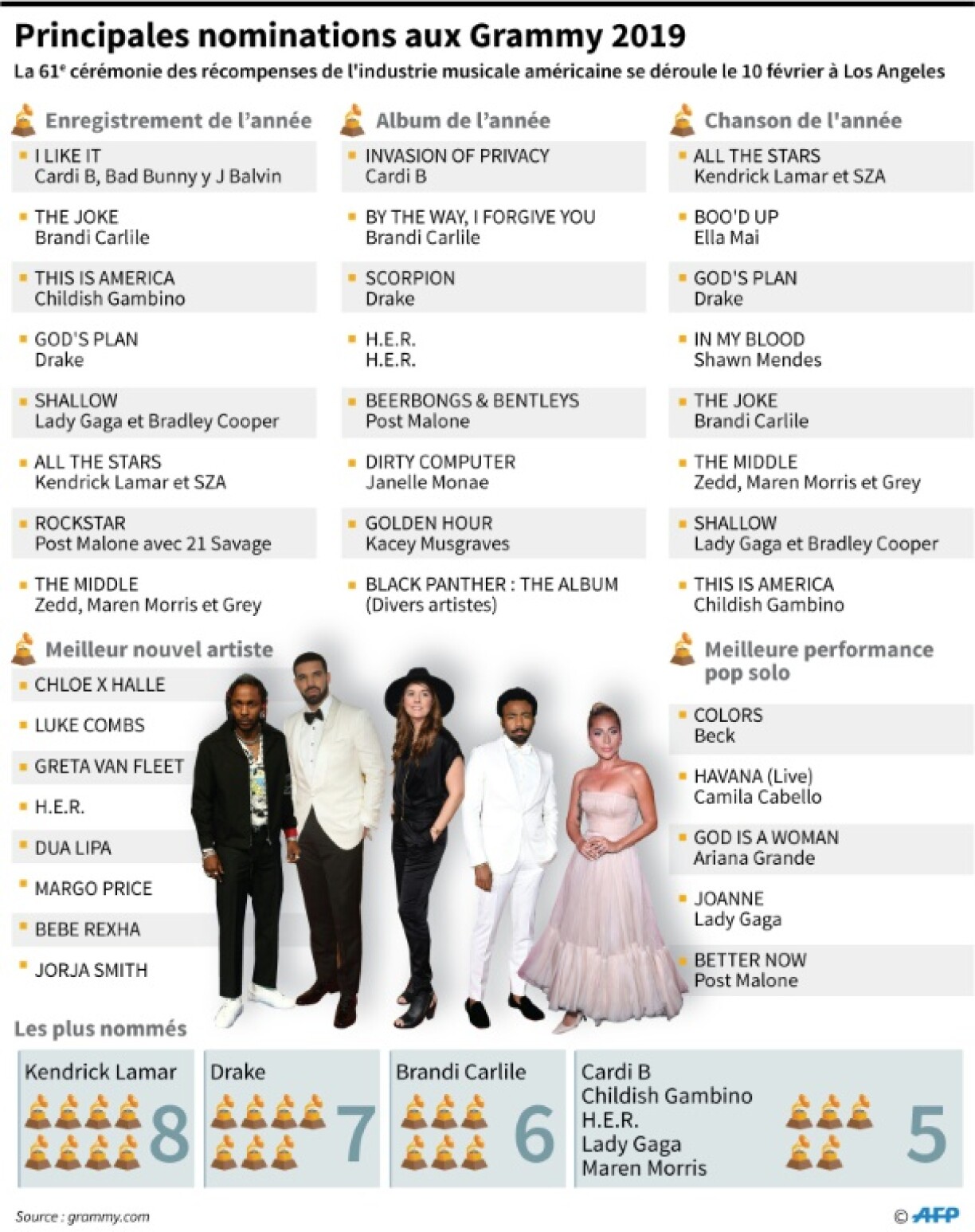 D’Grammy Awards gehéieren zu de wichtegste Musekspräisser op der Welt. An der Nuecht op e Méindeg goufe se scho fir déi 61. Kéier am Staples Center zu Los Angeles vun der “National Academy of Recording Arts and Sciences” verdeelt.