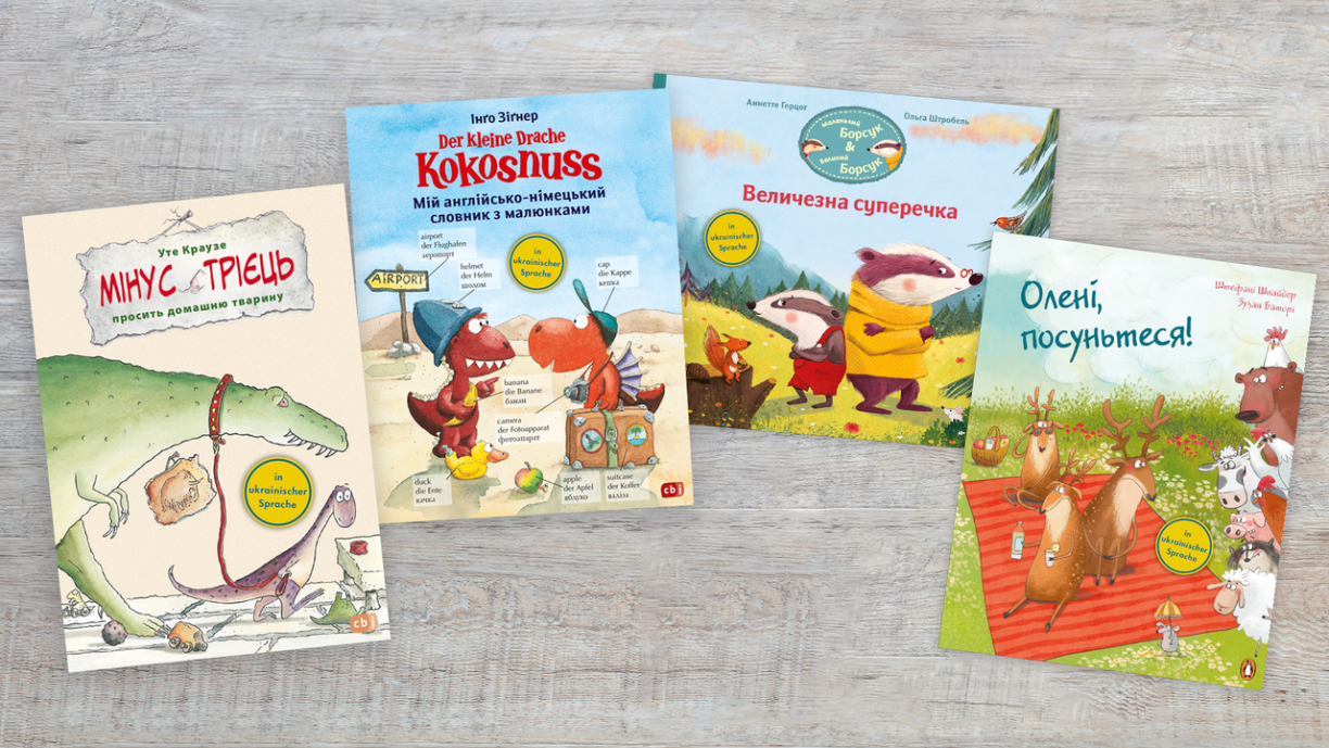 Vun där Iddi war och d’Susanne Krebs, Cheffin vun der “Penguin Random House Verlagsgruppe” begeeschtert. An deem Sënn léisst de Verlag d’Bicher op ukrainesch iwwersetzen a stellt se duerno als PDF-Download zur Verfügung. Et hätt een dobäi op Bicher zeréckgegraff, déi am Grondschoulalter kënne benotzt ginn, z.B. d’Billerbuch “Kleiner Drache Kokosnuss” vum Ingo Siegners. Sämtlech Bicher bidde sech un, fir de Kanner elementar Begrëffer och direkt zweesproocheg ze vermëttelen. Iwwersat goufen awer och Bicher fir Jugendlecher.