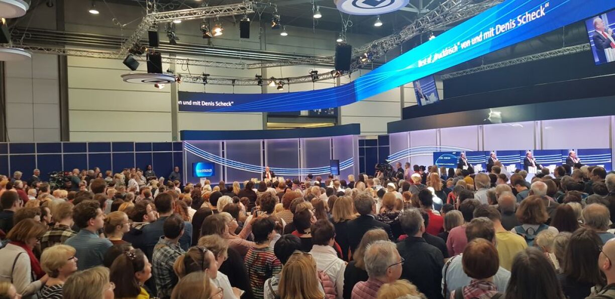 Éischt Lektioun: besser online accreditéieren, soss leefs de wéi en Hong ouni Kapp vun Hal zu Hal ier s de, no enger Véierelstonn, endlech de Pressezentrum fënns. Virun der Bühn vum ARD-Forum kludderen e puer honnert Sebastian-Fitzek-Fans uneneen. De Star-Auteur, dee vrun zwou Wochen zu Lëtzebuerg war, stellt nämlech grad säin drockfrëscht Sachbuch fir Kanner vir: “Fische, die auf Bäume klettern”.