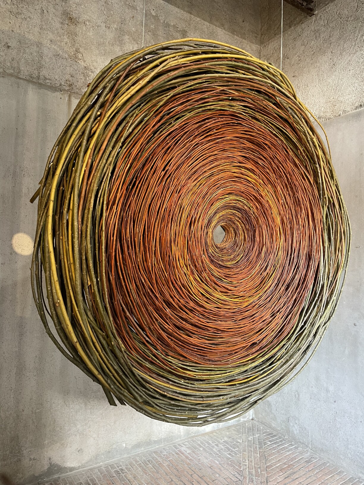 Dat drëtt a lescht Wierk ass e gigantescht Nascht, wat ech aus Äscht geflecht hunn, déi aus de Lëtzebuerger Bëscher kommen. Ech wollt weisen, dass mir dacks no „eiser Plaz“ sichen - sief dat am Liewen, an der Gesellschaft oder Doheem - an dat hei soll eng Invitatioun sinn, fir déi Plaz a sech selwer ze fannen.