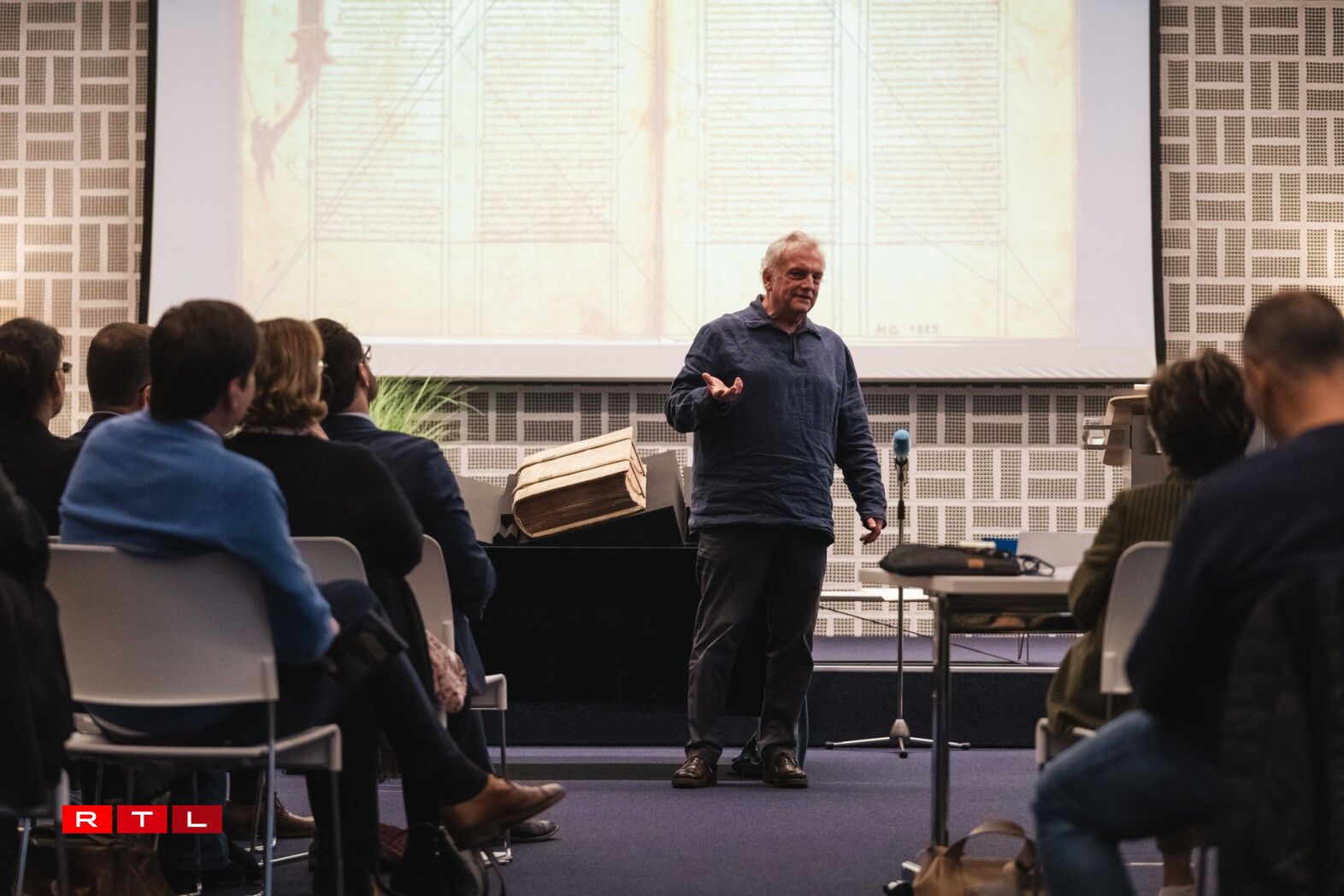 Après un mot d’accueil du directeur Claude D. Conter, Luc Deitz, responsable du fonds des manuscrits et imprimés rares à la BnL, a pris la parole pour présenter le manuscrit aux représentants de la presse. Ensuite, Claude D. Conter a détaillé l’appel aux dons et les modalités de soutien à ce projet ambitieux. La conférence s’est conclue par une intervention du ministre de la Culture, qui a clarifié les enjeux culturels et politiques de cette acquisition pour le patrimoine national: