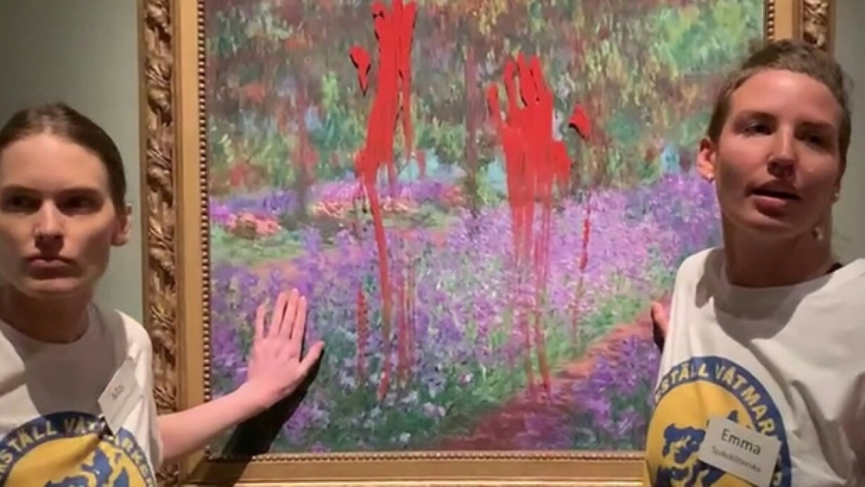E Mëttwoch haten zwou Aktivistinnen d’Schutzglas vum Monet-Bild, wat aus dem Joer 1900 staamt, mat rouder Faarf beschmiert a sech dono um Glas festgepecht.