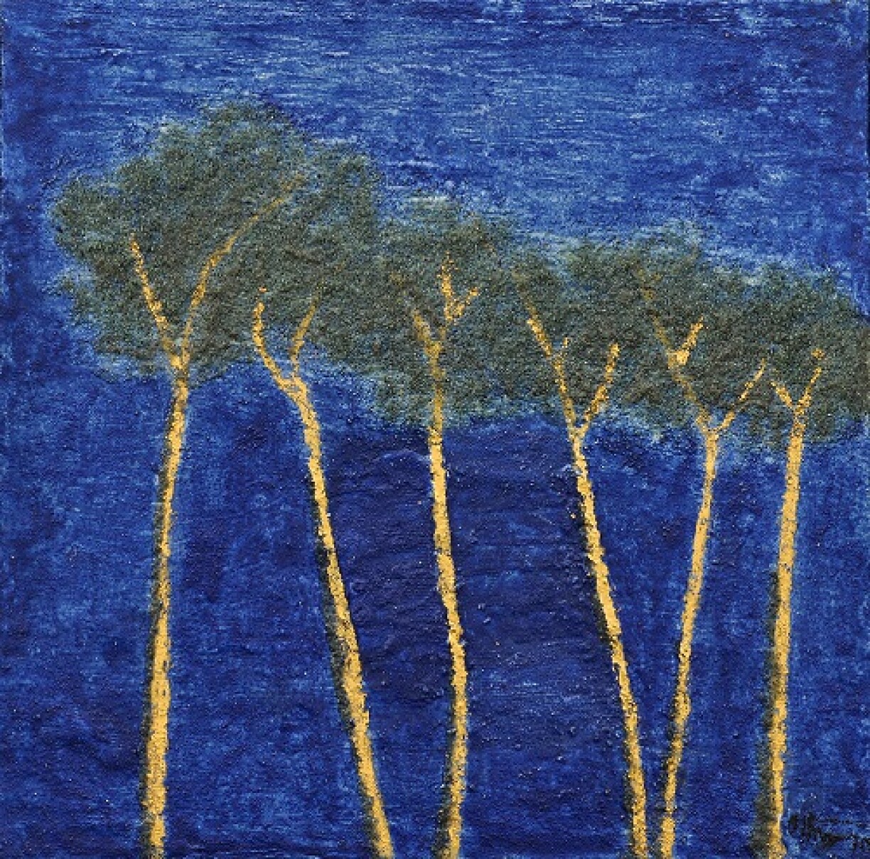 «Ce lapis lazuli d’essence onirique avec son indigo à bleu clair, son azur foncé où scintillent de curieuses pépites d’or est la pierre magique par excellence qui donne à la peinture d’Ott NEUENS sa dimension quasi mystique.»