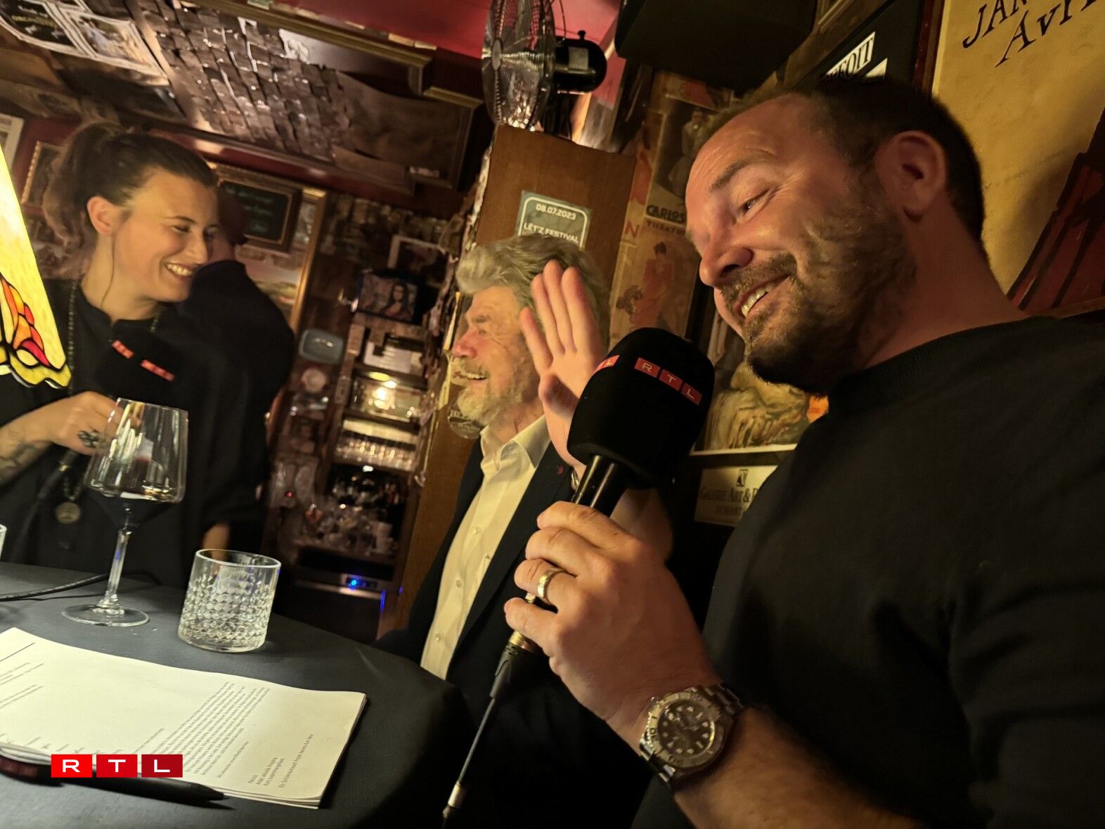 Am ‘Café des artistes’ am Gronn hunn den Dan Spogen, Raoul Roos, Mike Fandel an d’Shari Schenten Bekanntschaft mam Reinhold a senger Lëtzebuerger Fra Diane gemaach, a sinn gewuer ginn, wat d’Geheimnis vun hirem Gléck ass. Awer och den Doud war en Thema, seng schéi voll Hoer, den Handy, Fleesch, kal Féiss an d’Lëtzebuerger Wéngerten kommen dës Woch zur Sprooch.