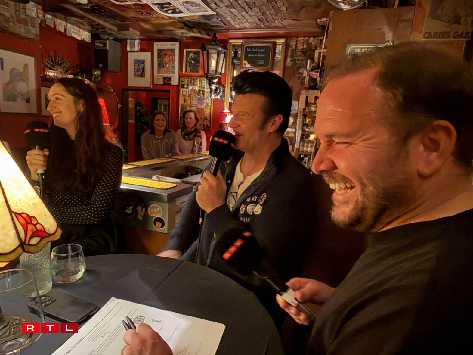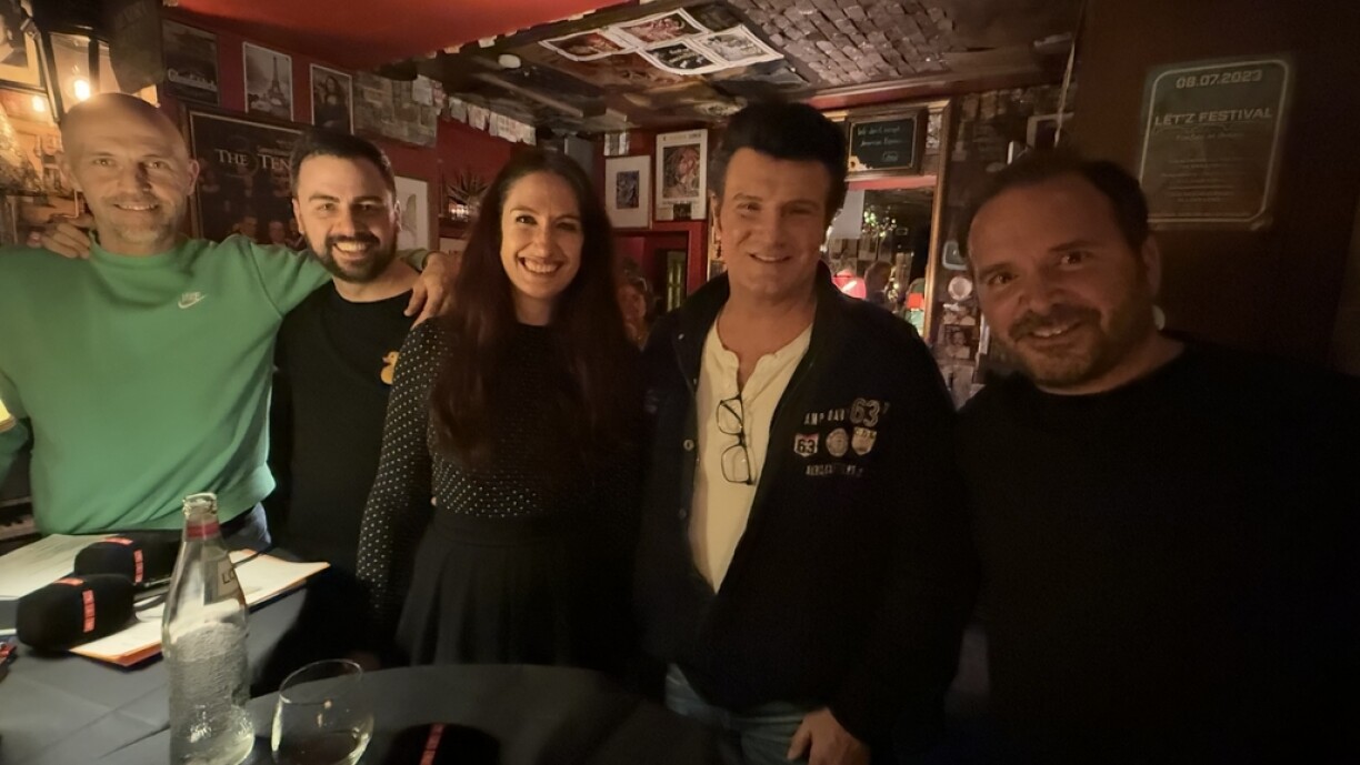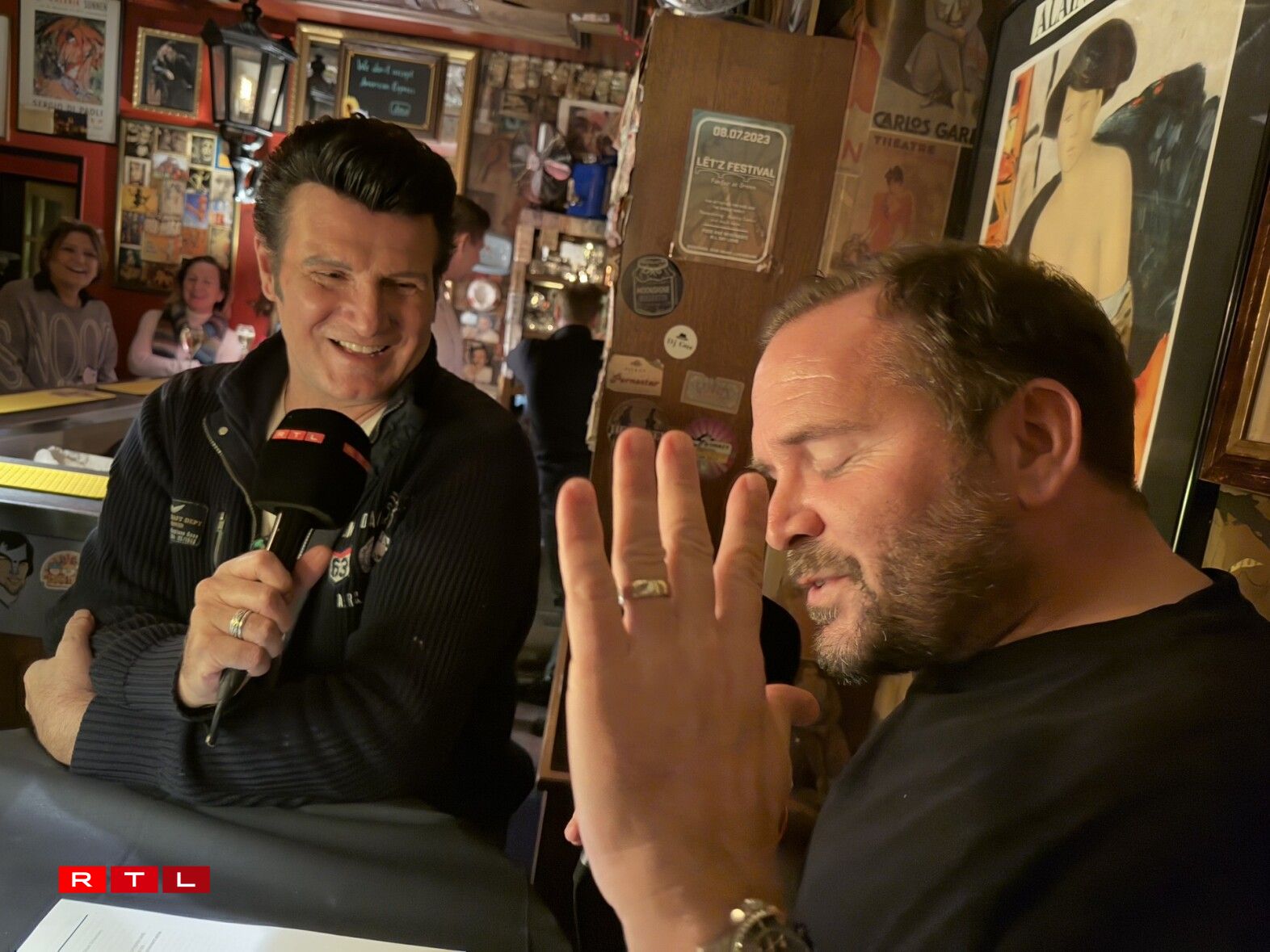 Am ‘Café des artistes’ am Gronn ginn den Dan Spogen, Raoul Roos, Mike Fandel an d’Shari Schenten gewuer, dass de Steven Pitman um Flughafen Hahn op d’Welt koum, dass hien zwee Joer hannert senger Fra hier war. Hie verréit, dass en eng Kéier bei engem Optrëtt seng Box vergiess hat, an dass en am Mäerz an d’Pensioun geet.
