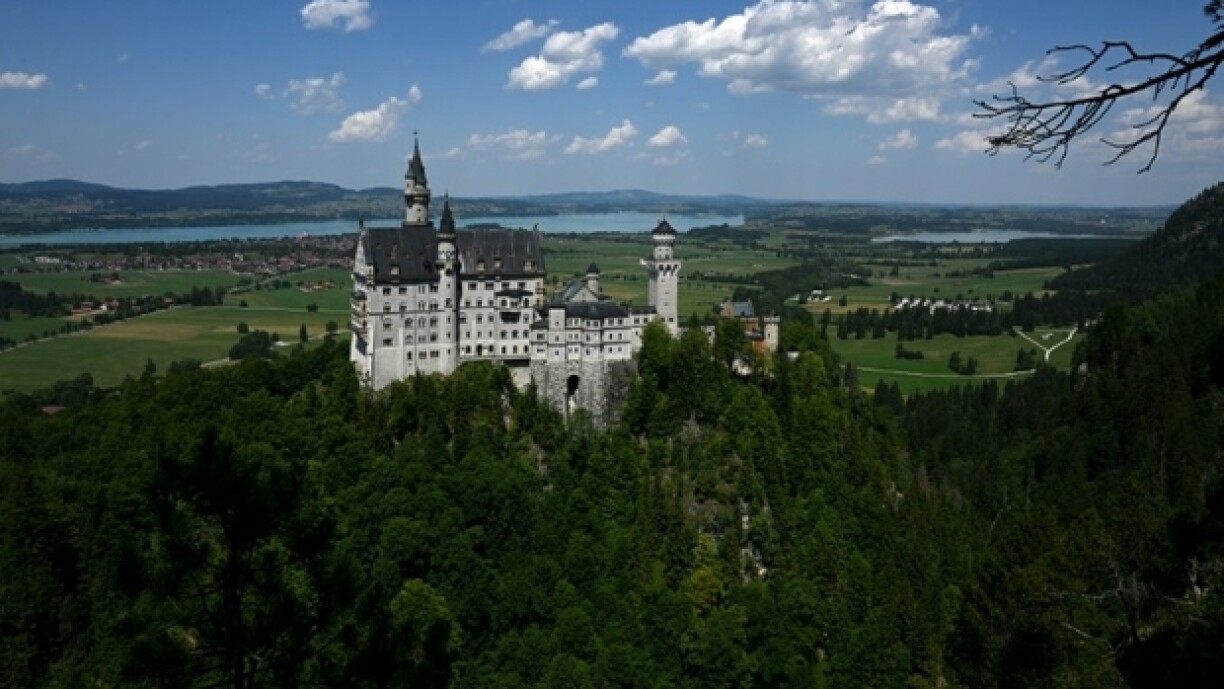 Dat berüümte Schlass Neuschwanstein, dat wuel am beschten als Inspiratioun fir dem Walt Disney seng Märcheschlässer bekannt ass, steet op engem 200 Meter héije Fiels an ass dat meeschtbesichte Schlass an Däitschland mat bal 1,5 Visiteuren all Joer.