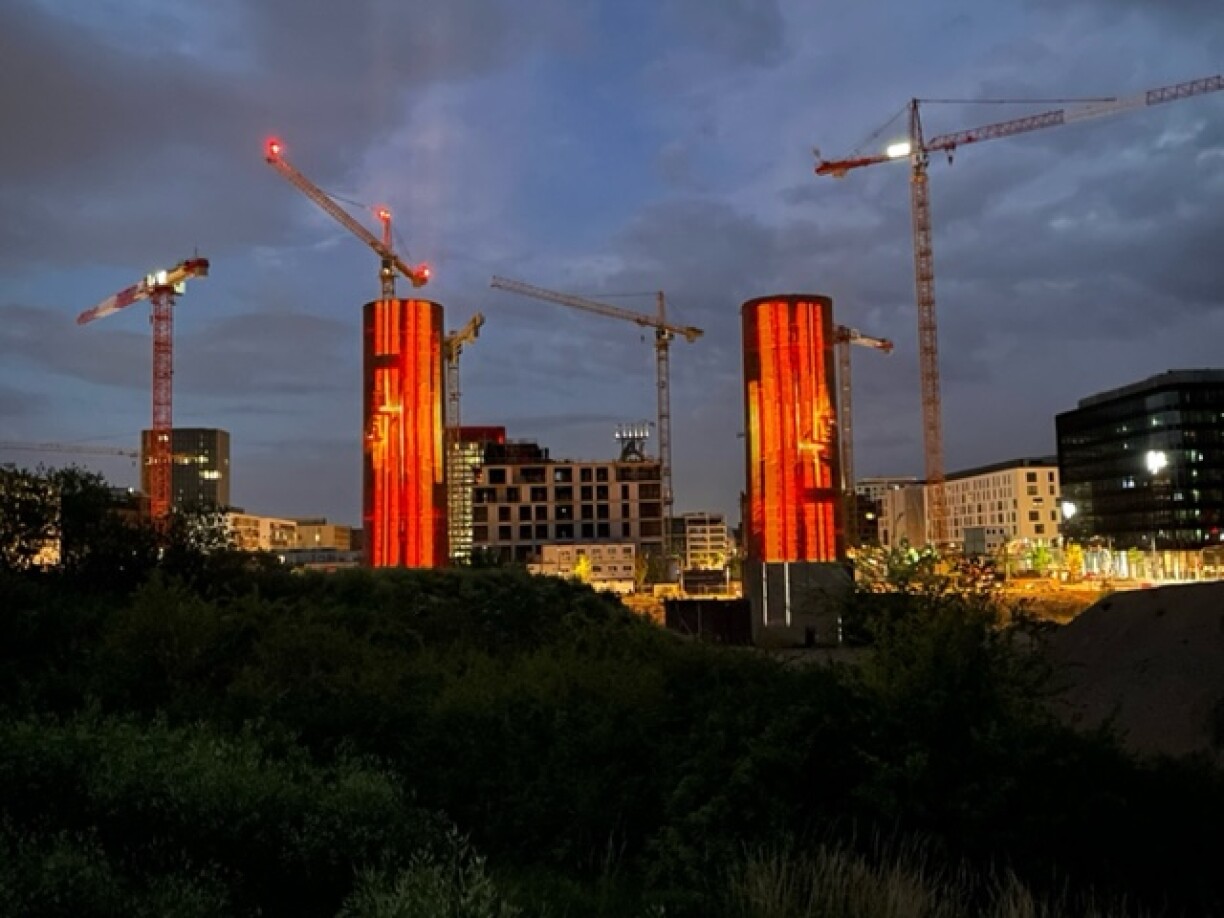 Mat der Skyline vum neie Quartier Belval an den Héichiewen am Hannergrond, soll nach emol d’Geschicht an de Site vun der Stolindustrie op dëser Plaz gewise ginn.
