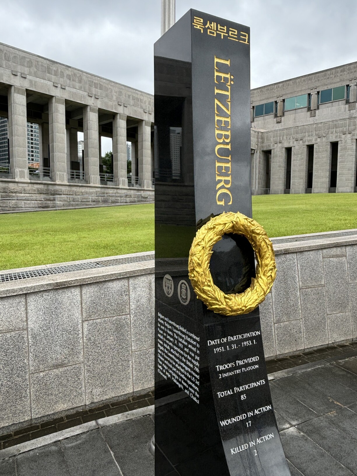 An nieft der temporärer Expo am War Memorial zu Seoul stinn zwou grousseg Gerben, op deenen eemol op Koreanesch an eemol op Lëtzebuergesch/Englesch ze liesen ass: “Villmools merci Friends of Luxembourg.” Déi koreanesch Dankbarkeet ass Land a Leit nach laang gewëss.