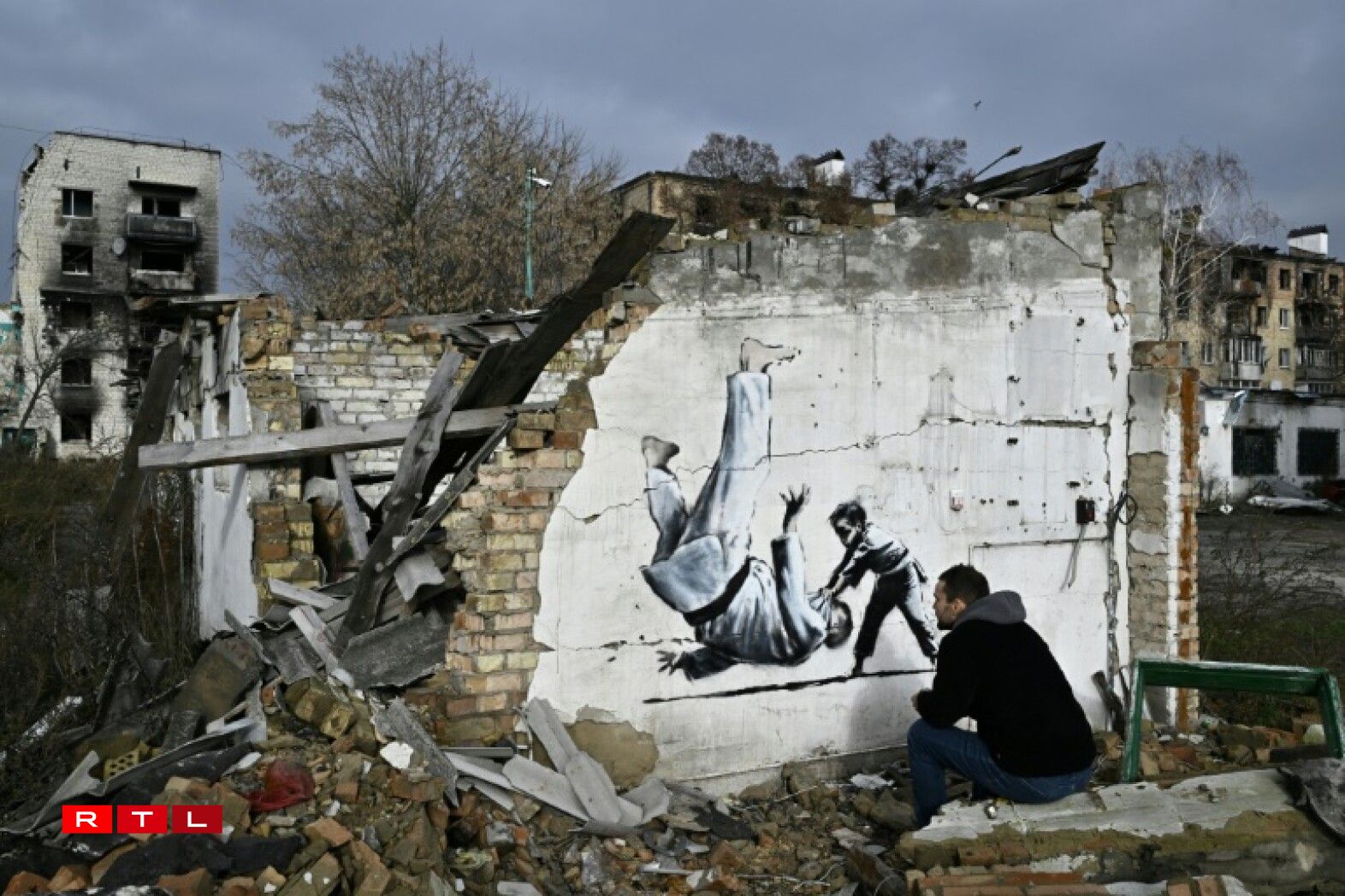 De mysteriéise Kënschtler Banksy ass bekannt fir seng Wierker, déi och emol a Kriseregiounen opdauchen. Sou wéi elo an der Ukrain. Bis e Sonndeg am Nomëtteg war um Instagram-Kont vum Kënschtler just ee Bild ze gesinn - e Meedchen wat op den Iwwerreschter vun engem zerstéierten Haus en Handstand mécht - ma no an no si weider Wierker an e puer ukrainesche Stied opgedaucht. Ënner anerem zu Kiew an an de staark zerstéierte Viruerter Borodjanka an Irpin war hien aktiv.
