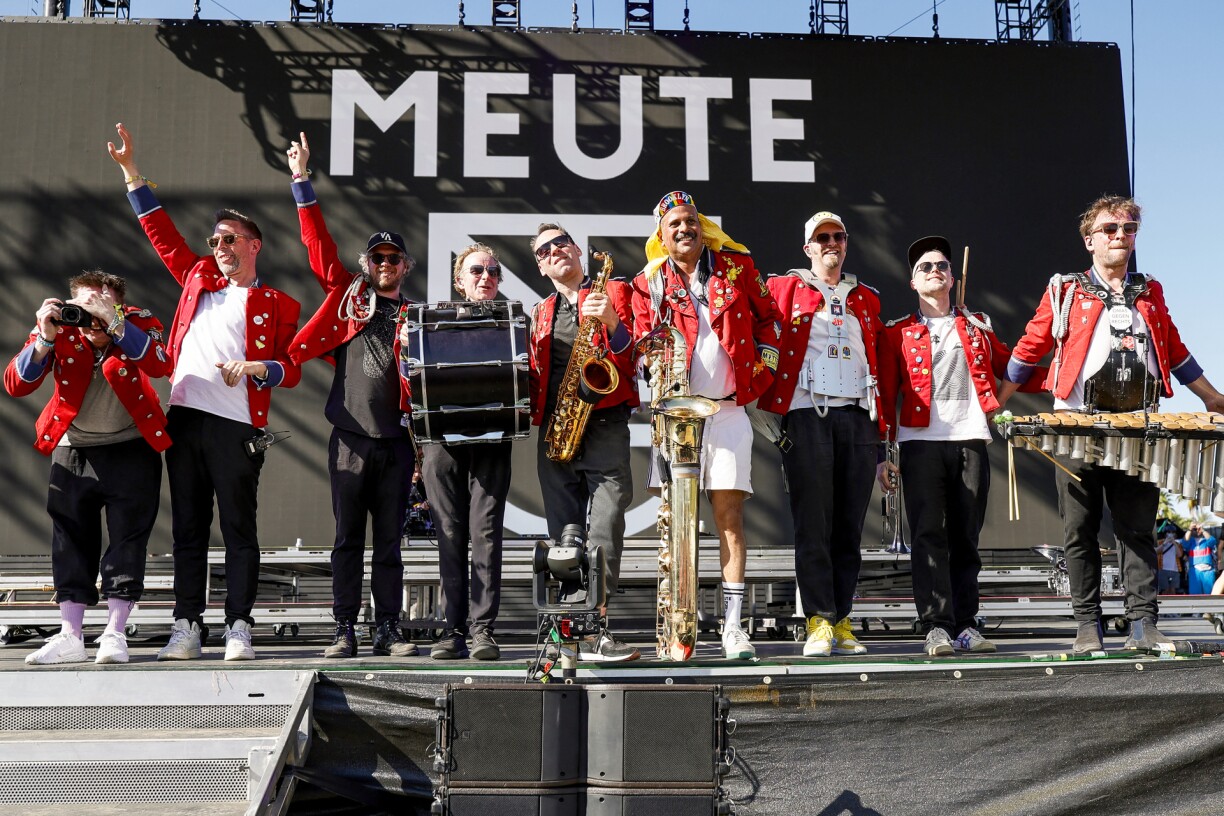 E Samschdeg den Owend war dat och de Fall hei zu Lëtzebuerg. Virun iwwer 2.500 Spectateuren huet Meute um Parvis vum Neimënster op en Neits bewisen, datt ee fir Techno-Téin net forcement e Synthesizer oder Computer brauch. De gemëschte Public vu jonk an al huet sech relativ séier matrappe gelooss vun der Energie vun der Band a war begeeschtert, wéi d’Museker, wéi et typesch fir se ass, bemol vun der Bün erof matten an de Leit gespillt hunn. D’Freed, déi d’Artiste selwer hunn, gesäit een hinnen net just of, et spiert ee se reegelrecht. Eng sympathesch Band mat Power, déi déi wonnerschéi Kuliss vum Neimënster an eng Open-Air Party verwandelt huet.