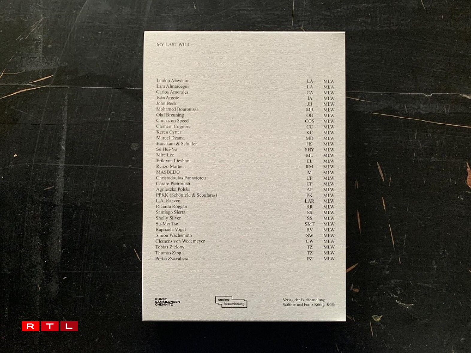 Scho virun e puer Joer koum de dem Kënschtler- a Curateuren-Duo M+M (Marc Weis & Martin De Mattia) am Gespréich mat Artist*innen d‘Iddi fir “My Last Will”. An enger éischter Phas hunn si déi 32 Artisten drëm gebieden, fir e Kënschtlerbuch zu hirem leschte Wëllen ze entwéckelen – a Form vun engem Text, ma och mat Zeechnungen, Fotoen oder Collagen.