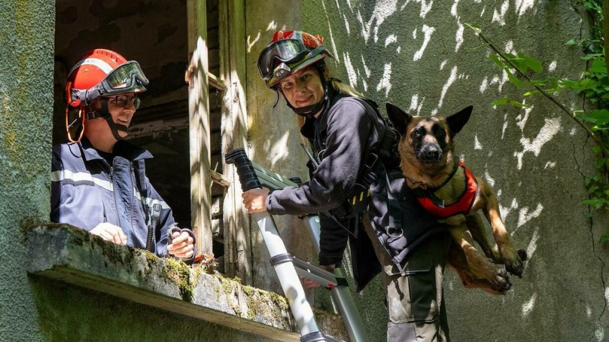 Fir ofzeschléissen, war eng gréisser Übung geplangt. An Zesummenaarbecht mat den Ekippe vum GIS GRIMP an dem CSL hunn d’Membere vum GIS Cynotechnique um alen Terrain vun der Arbed eng speziell Aufgab preparéiert. Do missten d’Rettungshënn Persounen, déi sech a schwéier zougänglechen Déiften an héije Gebaier verstoppt hunn, sichen an duerno retten.