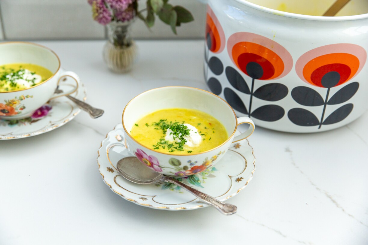 An der 1. Episod geet et ëm dem Léa Linster hiert Rezept fir eng Mullenzopp mat Curry a Poretten, dëst aus dem Joer 1994.