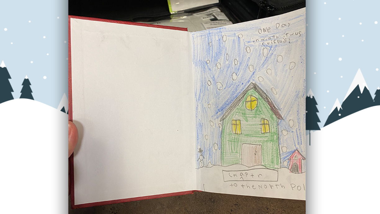 Mam Saz “ONE Day in wintertr it wus Crismis” fänkt d’Buch vum Dillon Helbig un. E Buch, dat e jonke Schüler aus den USA geschriwwen huet. 88 Säiten ass d’Geschicht laang. Se handelt vun engem Stär op engem Chrëschtbeemchen, deen explodéiert. Doropshi gëtt de Protagonist an d’Vergaangenheet transportéiert. Eng originell Aventure, déi net nëmme bei senge Matschüler gutt ukënnt.