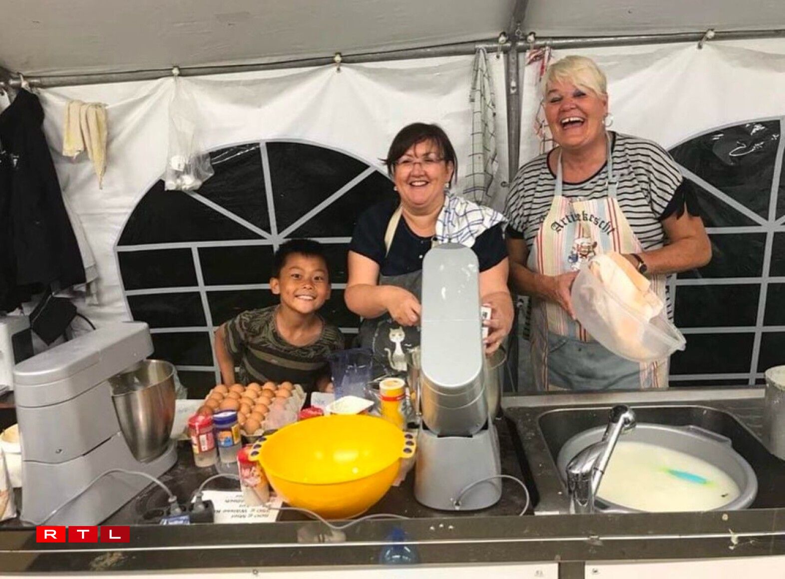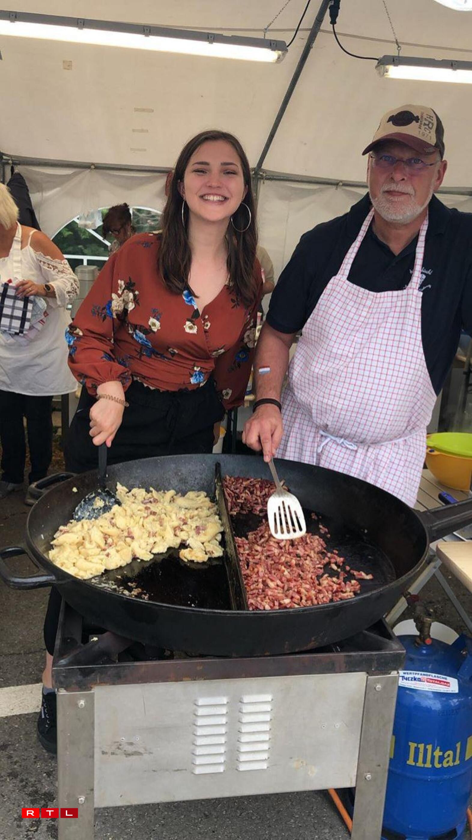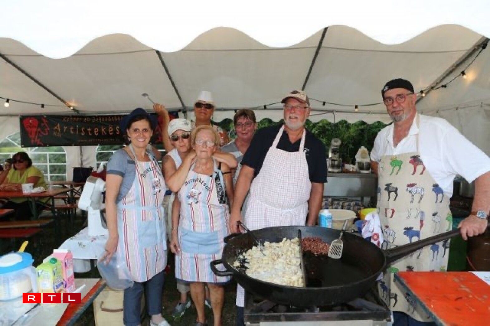 Zënter ronn 15 Joer ass een als Theaterveräin bei der Fête de la musique zu Keel dobäi. Ufanks huet ee gegrillt a Panescher gemaach, du koum op eemol d’Iddi, fir Kniddelen ze maachen, fir en Twist eranzebréngen. “D’Ingredienten hu jo net vill geännert, et si quasi déi selwecht wéi fir d’Panescher”, erzielt eis d’Regisseurin vun der Artistekëscht Josiane Becker, déi vun Ufank un dobäi ass. Deemools huet ee sech nach eng riseg grouss Pan misse léinen, fir d’Kniddelen dran ze broden, haut hätt ee mëttlerweil eng eegen. D’Leit goufe vun Ufank un duerch déi grouss Pann automatesch op de Stand opmierksam gemaach an ugezunn, de Succès war séier garantéiert. Mëttlerweil mécht d’Artistekëscht tëscht 90 an 100 Kilo Kniddelen, wuelgemierkt an zwee Deeg. Hei muss natierlech alles am Virfeld preparéiert ginn. Mat Ram a Speck a just mat Ram fir d’Vegetarier, dat sinn déi zwou Varianten, déi ee kritt, optional dann nach mat Äppelkompott dobäi oder mat Maggie, ebe bal wéi doheem.