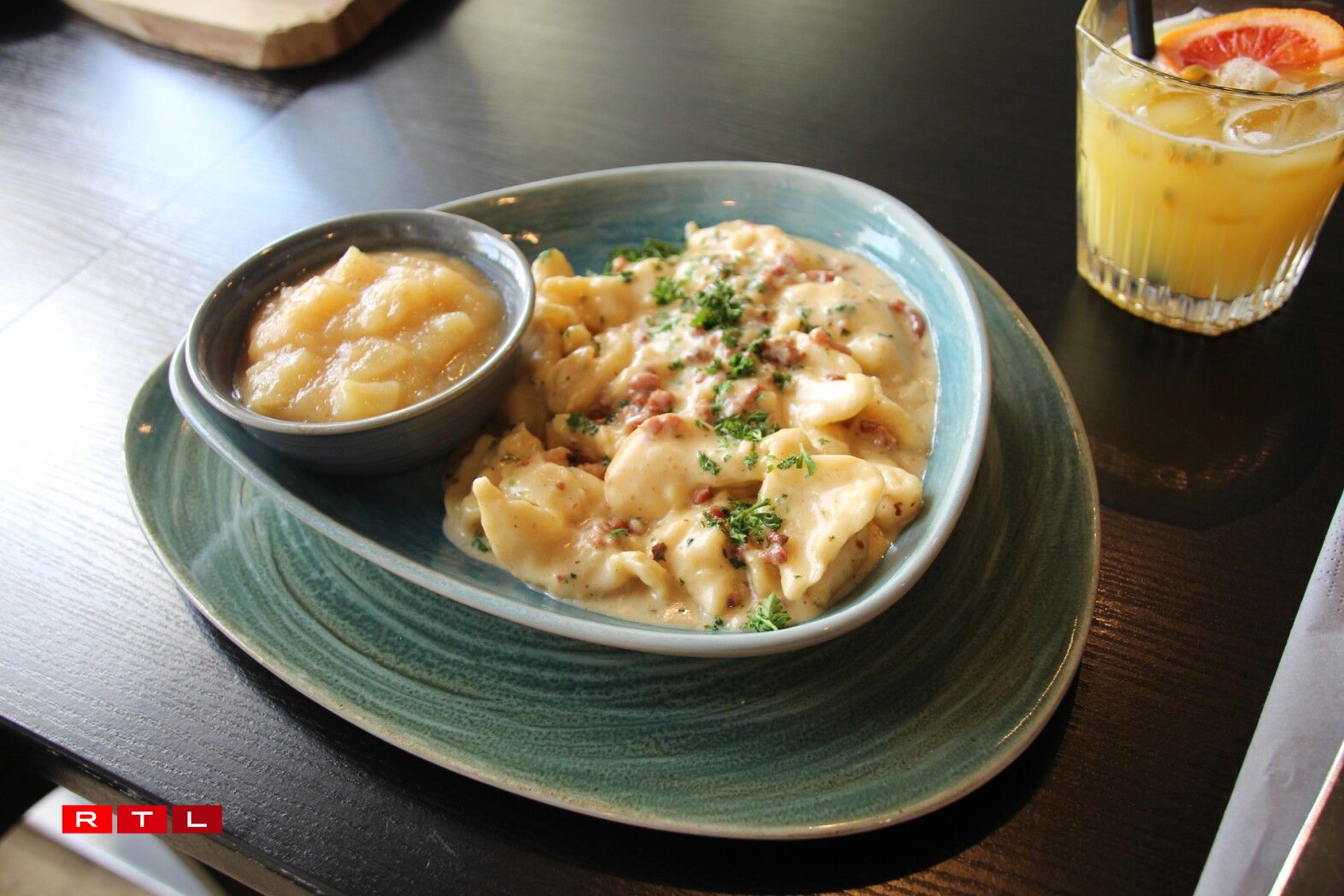De Philippe Schersach, de Kach am Restaurant, betount dann och, wat fir eng Freed et ass, dass därmoosse vill Leit seng Kniddelen esou gär hunn, an dass sou dacks fir si ofgestëmmt gouf. Op Nofro hin, huet hien eis da verroden, dass virun allem d’Klassiker, also d’Kniddele mat Speck, an d’Kniddele mat Ram a Speck, sou wéi och d’Kniddele mat Wäinzoossiss déi kloer Favoritte bei de Cliente sinn. Wat och gutt leeft, wieren déi gratinéiert Kniddelen, dat souguer am Summer, wann et an sech scho bal ze waarm fir sou e schwéiert Iessen wier, mengt op alle Fall de Kach. Ma d’Leit géifen se einfach gären iessen...