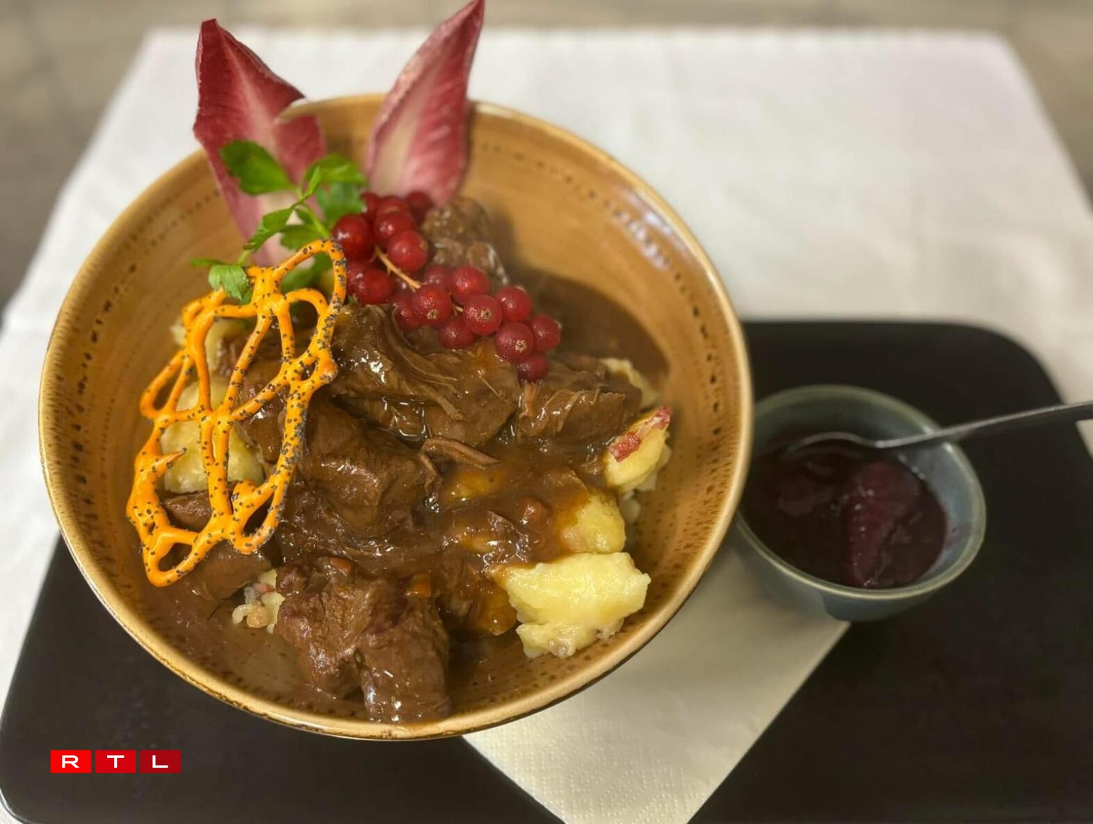 An och d’Portiounen hei hunn et a sech. Wie sou richteg Honger huet a fäert, net genuch ze kréien, deen ass zu Dikrech an der Stuff op der richteger Adress. Well d’Kniddele mat Wäinzoossiss an de leschte Jore sou beléift gi sinn (eben d’Kombinatioun aus zwou Lëtzebuerger Spezialitéiten), hu mer de Kach, de Rocco, gefrot, wat fir hien dëse Plat sou gutt mécht. Hei wier et natierlech d’Moschterzooss, déi vill zum Plat géif bäidroen: “E gudden, qualitative Moschter mat Kären dran an net ze vill Ram”, sou den Tipp vum Haus. A an O fir hire Restaurant wier awer grondsätzlech, dass alles géif sou wäit et geet vun Hand gemaach ginn. D’Resultat ka sech op alle Fall weise loossen. D’"Dikkricher Stuff” ass ganz kloer eng Rees op Dikrech derwäert a verdéngt wäit uewen am Ranking.