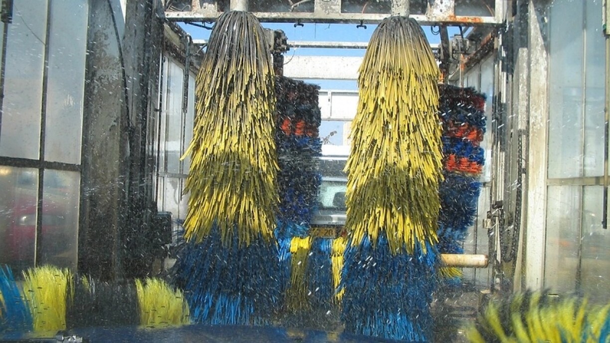No 9 Stonnen eréischt koum den eeleren Här zeréck, den Auto houng do nach ëmmer an der Wäschanlag. Hien huet doropshin ugefaang un der Maschinn ze schrauwen. Doru gouf hien um Enn awer gehënnert. Eréischt mat Hëllef vun enger Depanneuse konnt den Auto gebuerge ginn.