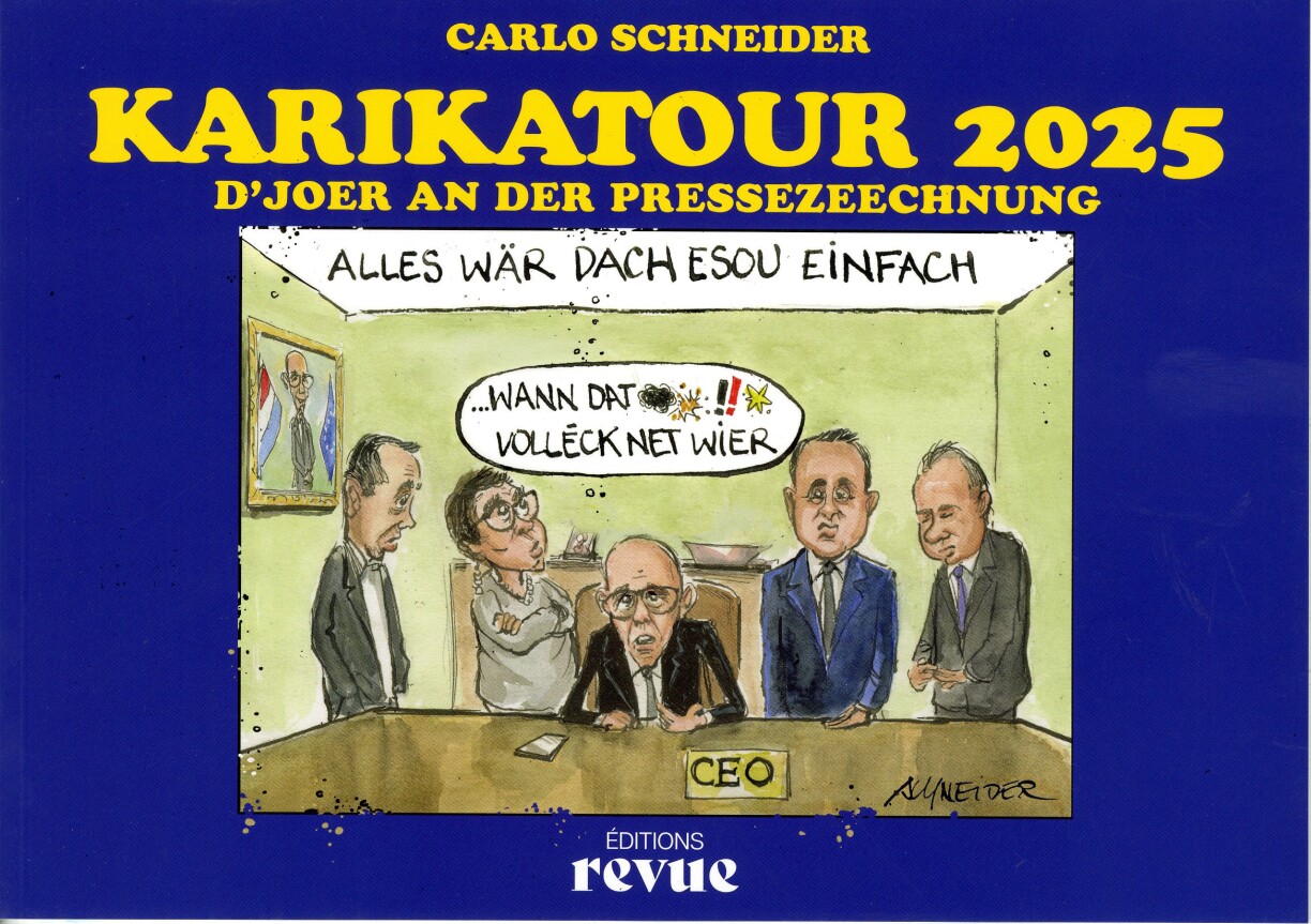 De Carlo Schneider bréngt d’Leit mat senge Karikaturen iwwer d’Aktualitéit zum schmunzelen. Hie kann net roueg sëtzen a bal ëmmer huet hien eng Fieder an der lénker Hand. Bekannt ass hien zanter ville Jore fir säi Joresréckbléck ‘Karikatour’, wou hien déi gréissten Evenementer, déi quokelegst Momenter an déi witzegst Zeene festhält a nach e bësschen Peffer a Salz driwwer street, fir d’Leit zum laachen oder op d’mannst zum Schmunzelen ze bréngen. Seng Zeechnunge weisen op ee Bléck, dass näischt sou schlëmm ass an och grotesk Optrëtter mat senger Hëllef eppes Witzeges hunn.