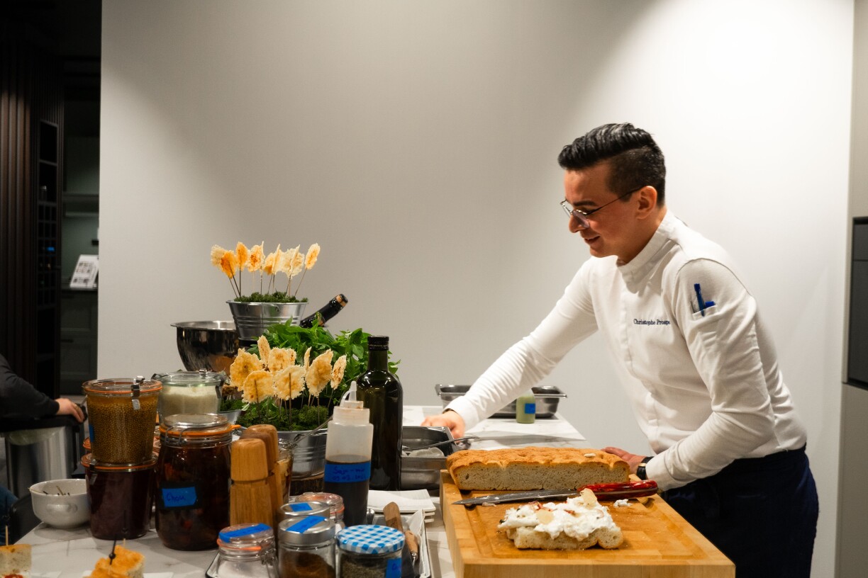 De Christoph Prosperi schafft zanter 15 Joer an der Gastronomie an dat mécht him grousse Spaass. War et de Monni Ernesto Prosperi, besser bekannt als de Baron, deen hien op de Goût bruecht huet, mee scho mat 17 war hien als Commis beim legendären Bocuse d’Or. 2017 huet hien säin éischten Restaurant um Lampertsbierg opgemaach wou e sech op d’Virléifte vu senger Mamm baséiert huet. Hien huet sech du séier op Hochzäite spezialiséiert, suergt fir de Catering a war 2018 Member vun der Nationalmannschaft vun de Lëtzebuerger Käch. 2022 huet hie sech selbstänneg gemaach a féiert direkt zwee Restauranten am Mëllerdall, fir déi en am Gault&Millaut ze fannen ass.