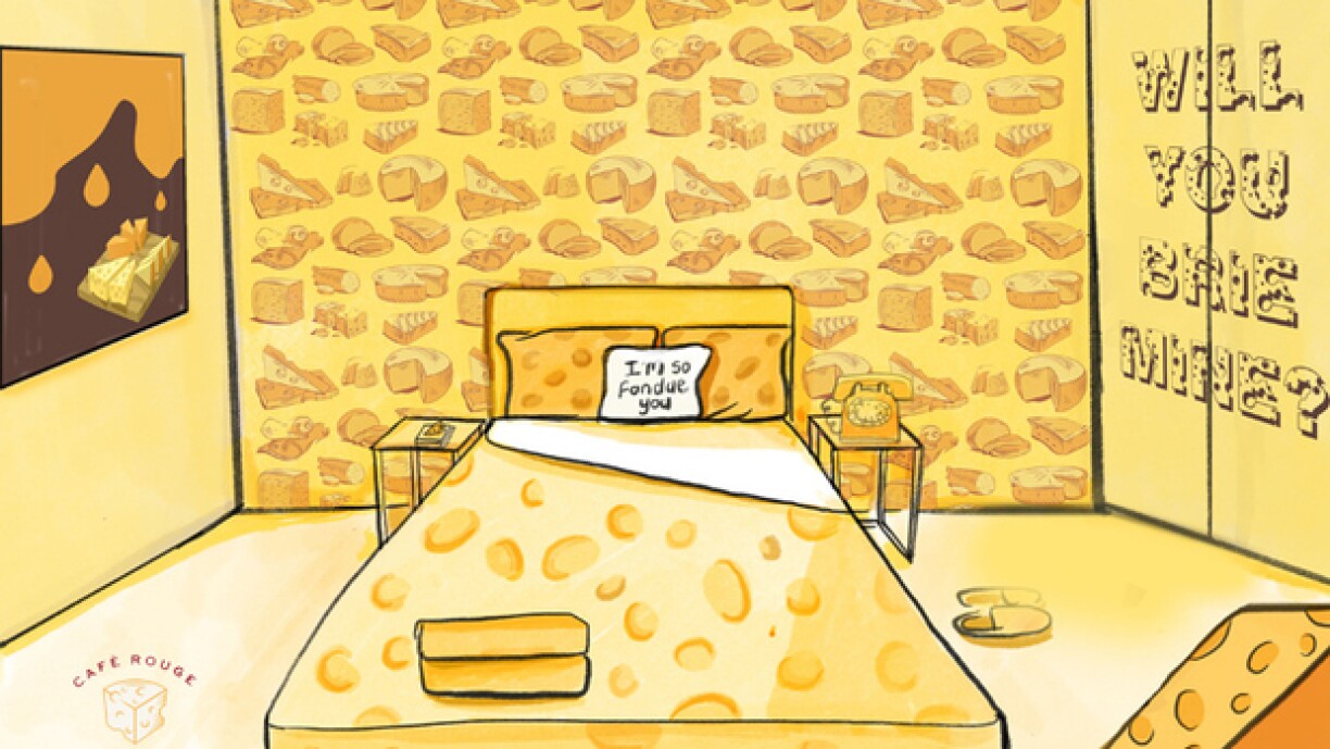 Am Londoner Staddeel Camden ass et tëscht dem 29. Januar an dem 6. Februar méiglech, an der “Cheese Suite” ze schlofen. Giel an appetitlech wäert den Inventar ausgesinn, vun Tapéiten, Miwwelstécker bis hin zu Seef mat Kéisgeroch.