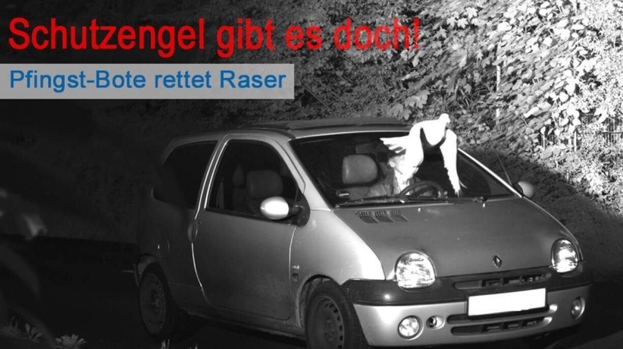 Do hunn d’Beamten net schlecht gestaunt, amplaz vun engem Gesiicht, hate si eng Dauf op der Foto. Déi war awer och just an deem Moment laanscht geflunn, wéi de Radar de presséierte Chauffer geblëtzt huet. D’Foto ass domat net valabel als Beweis an der Police si wuel oder iwwel d’Hänn gebonnen.