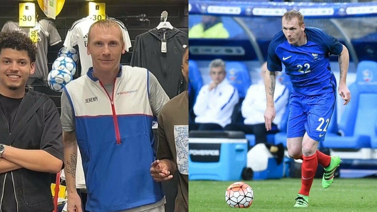 Zanter e Samschdeg mécht eng Foto grad an de franséische soziale Medien den Tour: De Jérémy Mathieu poséiert mat zwee Fans, an hien huet d’Aarbechtskleedung vum Sportsgeschäft Intersport un.