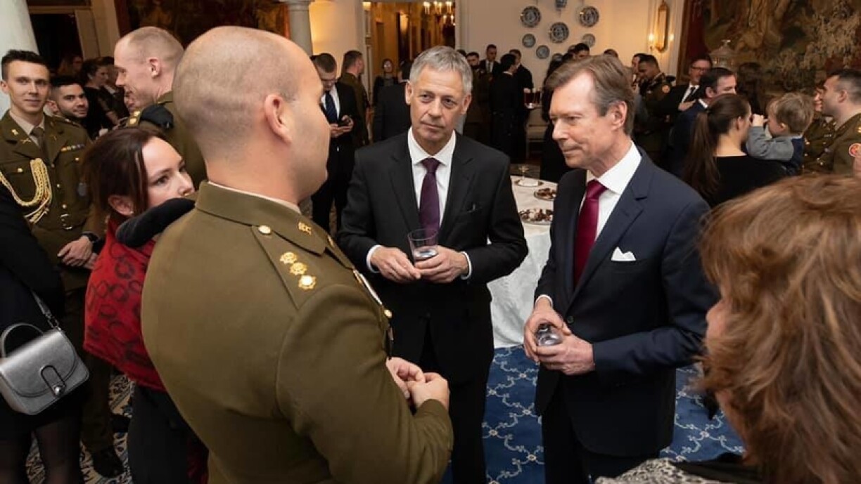Wéi d’Traditioun et wëll, invitéiert de Staatschef ëmmer kuerz virun de Feierdeeg déi Vertrieder vun der Lëtzebuerger Arméi a Police a säin Doheem, déi sech un humanitären Hëllefsmissioune wärend dem Joer bedeelegt hunn.