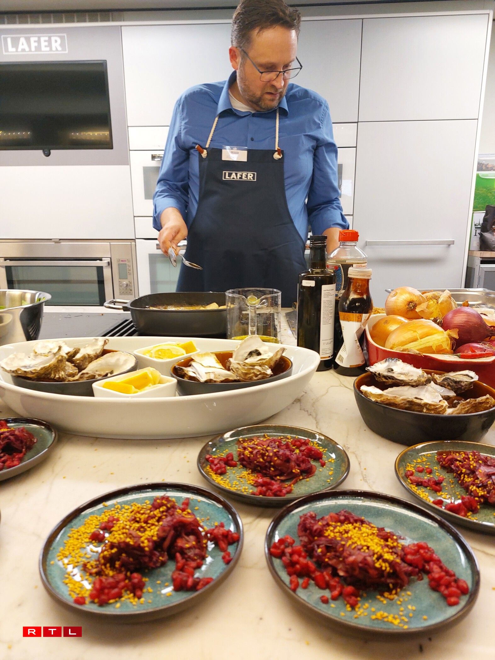 Eemol un der Säit vum Star- a Fernseekach Johann Lafer stoen a mat him kachen dierfen.