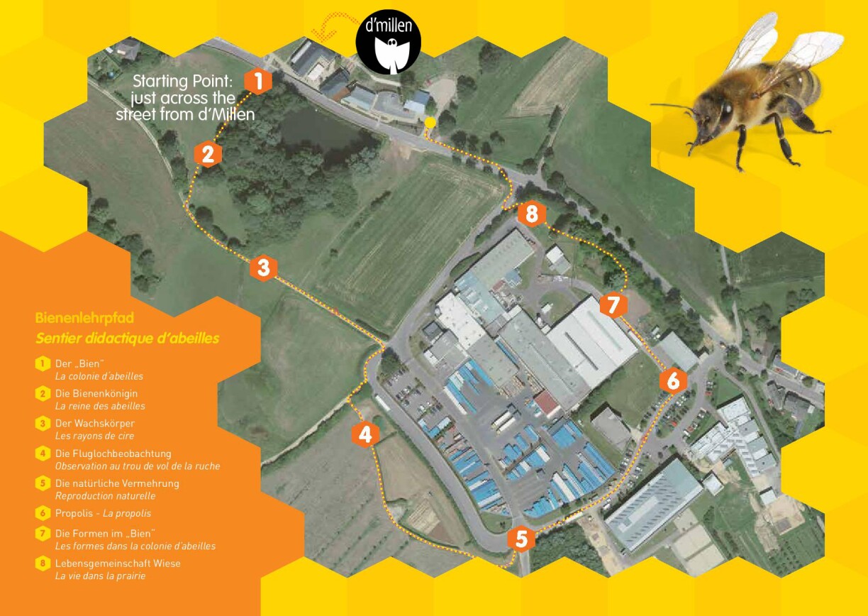 De Beie-Léierpad “to Bee or not to Bee” ass fir Famillen a Schoulklasse konzipéiert ginn. Op deene verschiddene Statioune kann een alles léieren, wat et iwwert d’Beien ze wësse gëtt.