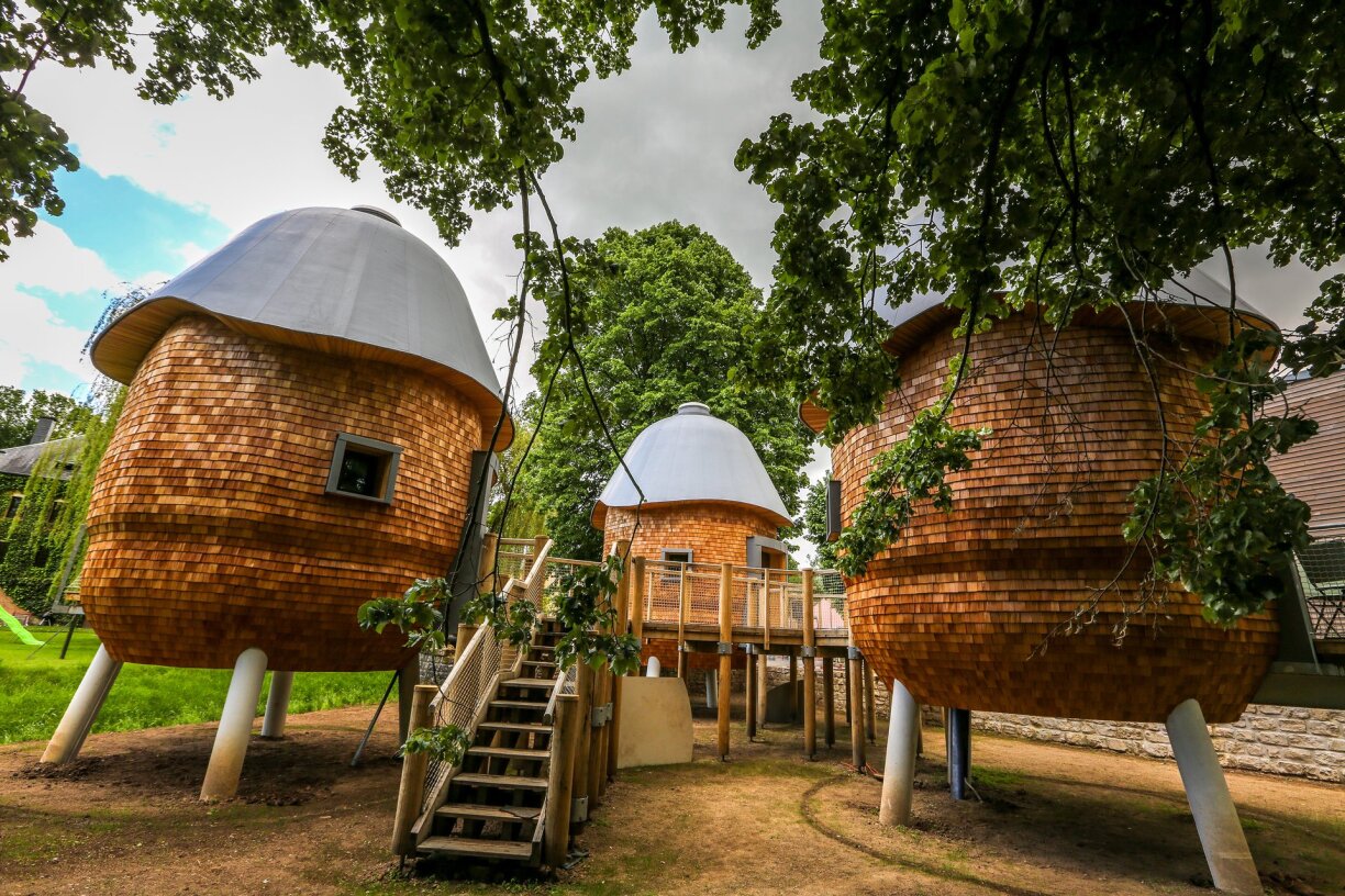 Zu Useldeng laanscht d’Atert stinn déi 3 Champignonshaiser, déi zum Hotel Peitchelauer gehéieren. Op 19 Quadratmeter gëtt et alles, wat ee brauch: Eng Dusch, Toilette, eng kleng Terrass an eng Schlofkummer, déi iwwer eng Leeder z’erreechen ass.