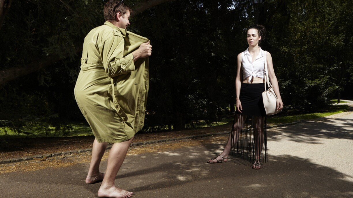 Wéi d’Police matdeelt, hat de 50 Joer ale Mann der Fra an engem Bësch opgelauert, fir hir do säi bescht Stéck ze weisen. Déi 39 Joer al Fra war net immens beandrockt, am Contraire. D’Fra huet de Mann ausgelaacht. Dee war doduerch esou erstaunt a wuel och extrem genéiert, dass e sech op engem Vëlo ganz séier duerch d’Bascht gemaach huet. D’Fra huet eng Plainte bei der Police gemaach, déi elo géint Onbekannt ermëttelt.