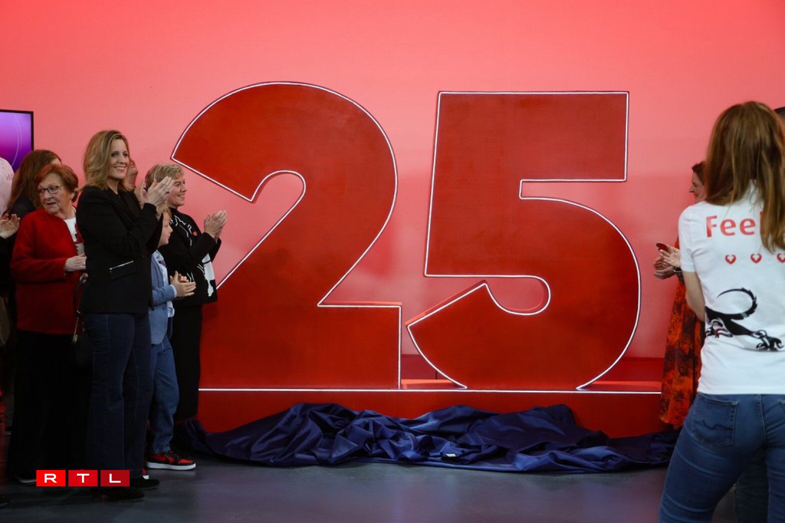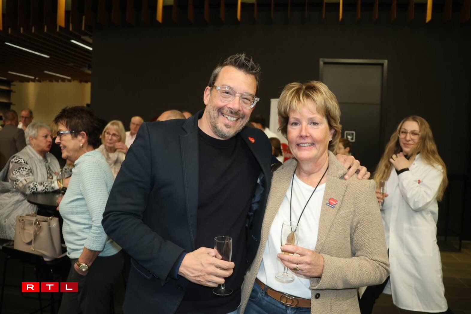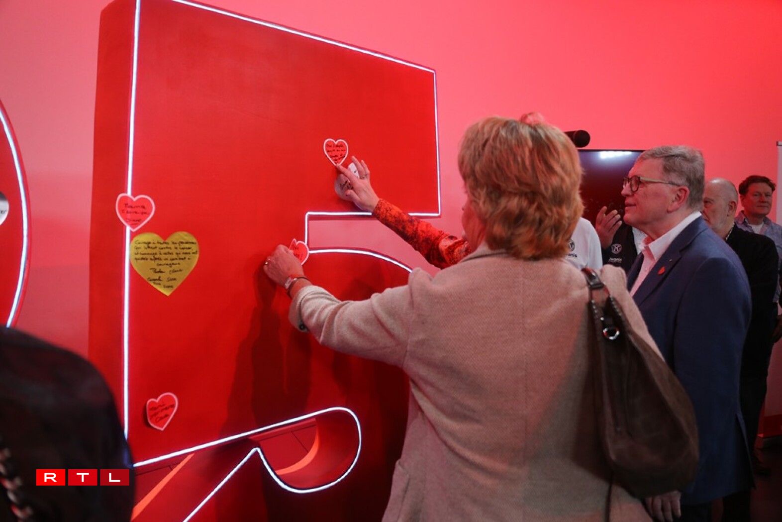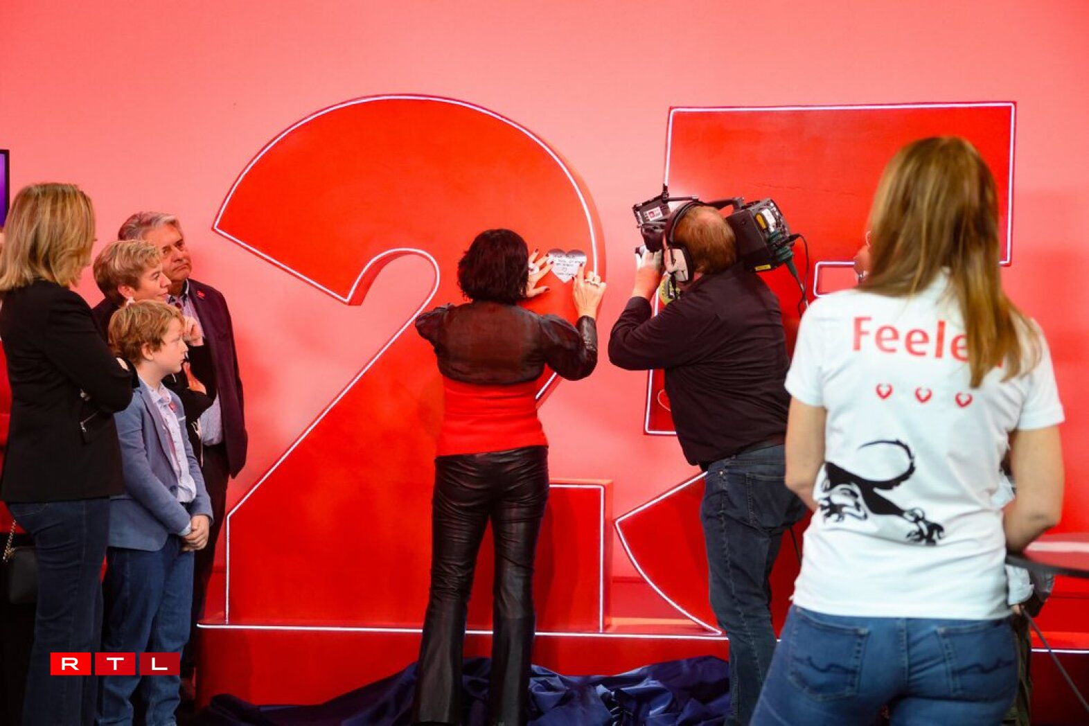 Zesummen mat der Gesondheetsministesch Martine Deprez gouf fir dës besonnesch Geleeënheet eng grouss ’25' devoiléiert, déi een elo mat perséinlechen Messagen vollpeche kann. Fir dës Geleeënheet hate sech vill Frënn vum Télévie afonnt, wéi d’Presidentin vum Kiwanis Nathalie Frisch, d’Chercheuren aus dem Labo vum LIH, d’Memberen aus der Direktioun vum Cactus déi Partner sinn an net ze vergiessen: d’'Survivors’, Kanner an Erwuessener déi, déi schlëmm Krankheet iwwestaan hunn.
