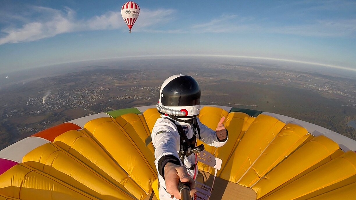 Den 28 Joer ale Fransous ass e Mëttwoch wärend engem Vol op e Ballon geklommen. Bei enger Héicht vun iwwer 3.637 Meter. Fir dës Héicht gouf sech bewosst entscheet, well se der Telefonsnummer vun enger Spendecampagne entsprécht, zu Gonschte vun enger seelener neuromuskulärer Krankheet.